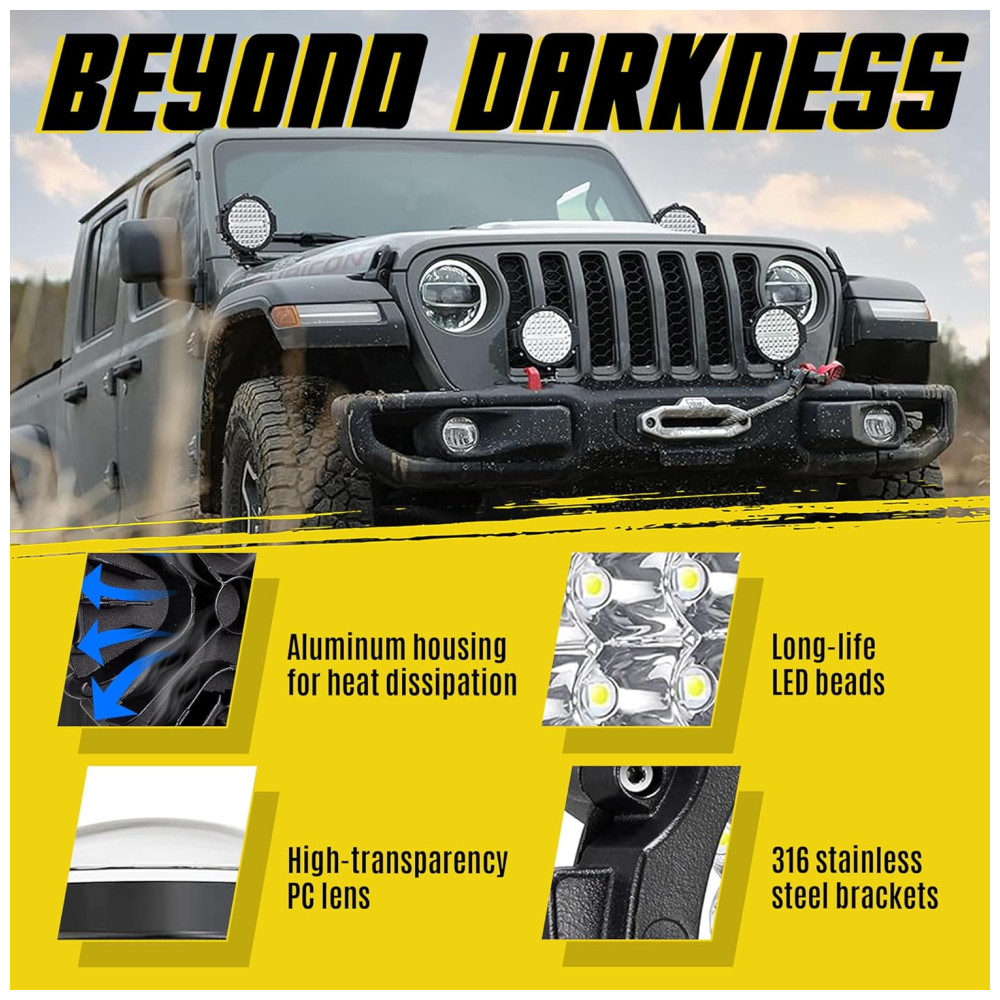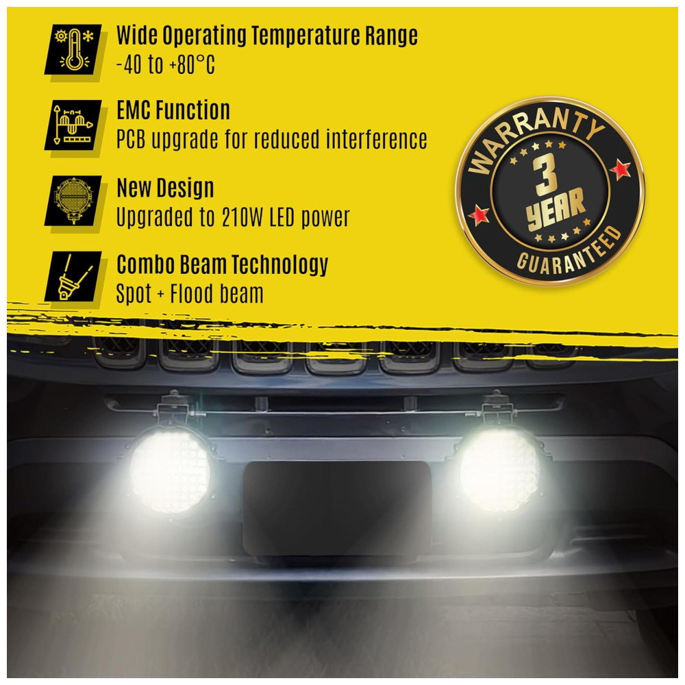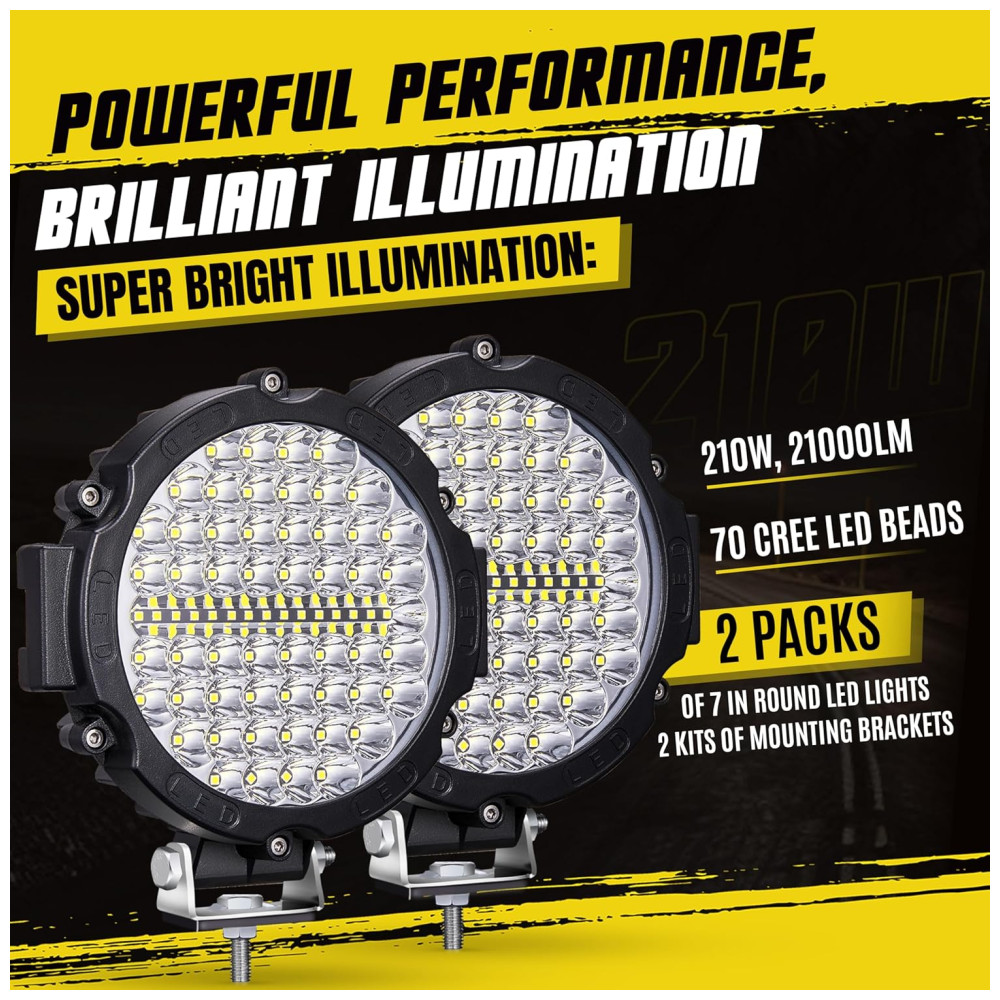 Do mesmo tamanho que os pods de LED de 51W de 7 polegadas, esses pods de LED de 210W disparam mais brilho para uma melhor experiência de trabalho automotivo e condução off road 4×4.
