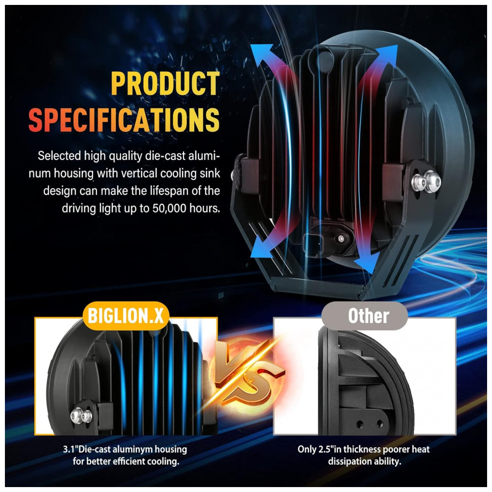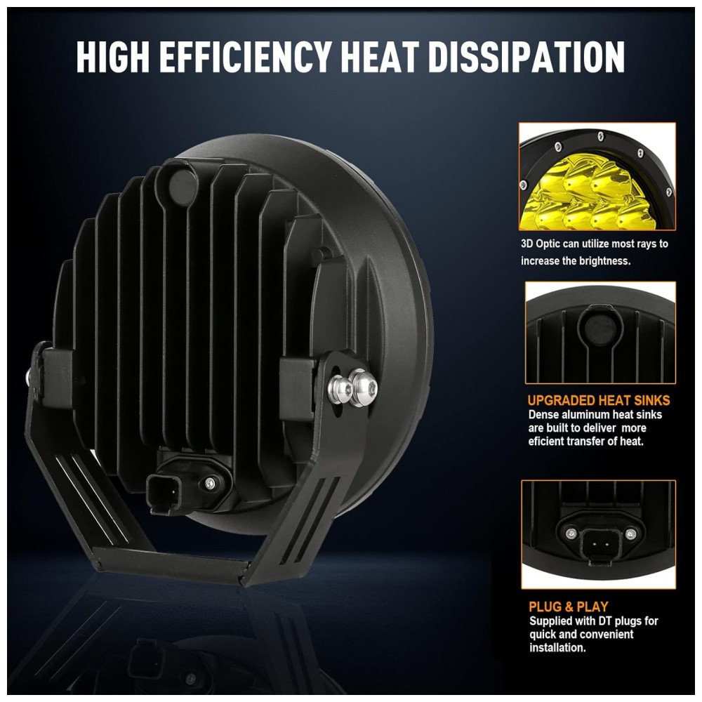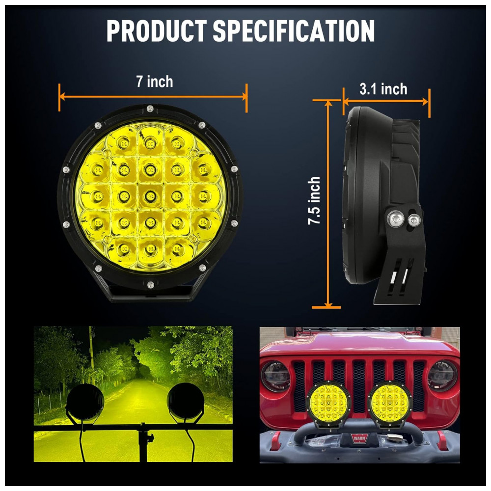 Efeito de iluminação eficiente: Cada copo de luz é combinado com o design do ponto e do feixe de inundação. O feixe de ponto viaja bastante longe e tem uma largura agradável. A luz offroad emite luz âmbar super brilhante. Dê uma visão segura na maioria dos intempéries, como dias chuvosos, dias nebulosos e dias nevados, torne a condução mais segura.