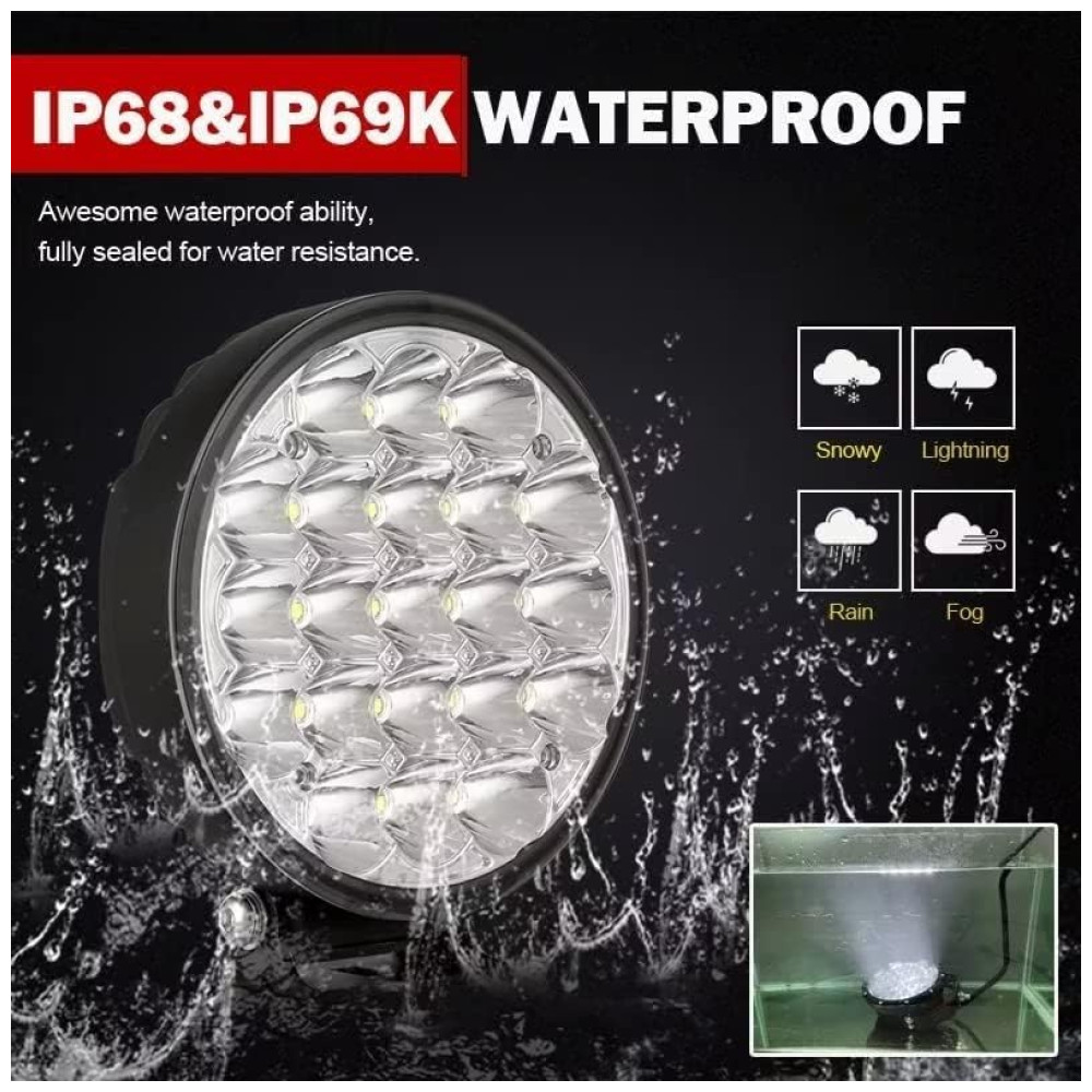 Taxa à prova dágua IP68 , IP69K. Luzes redondas da estrada com um círculo de tira de vedação dentro. Completo à prova dágua e à prova de poeira. Coloque o na água, ele pode resistir à umidade com eficiência