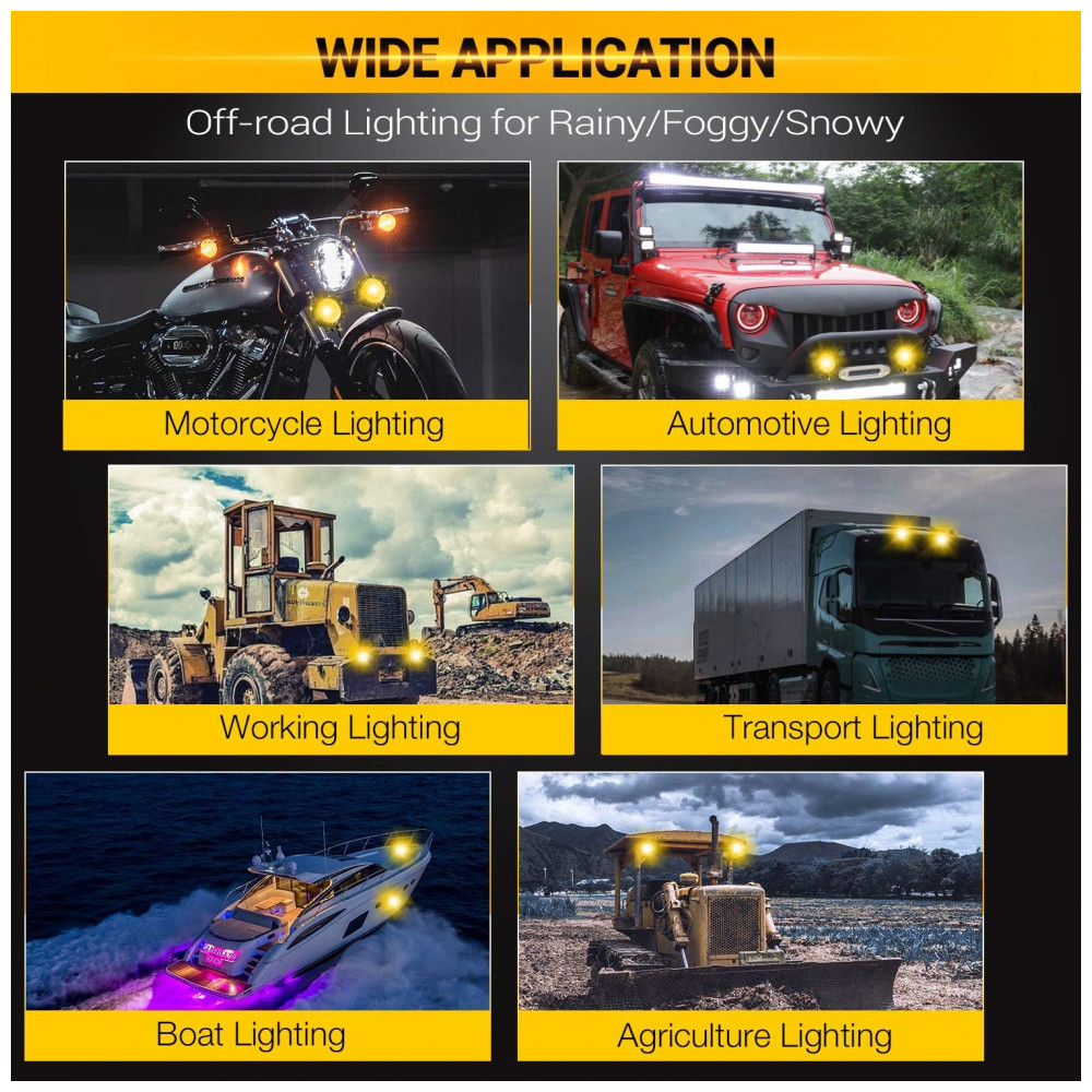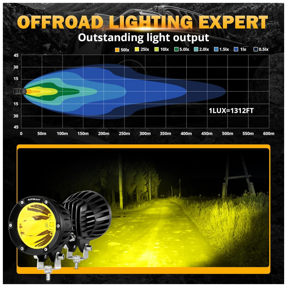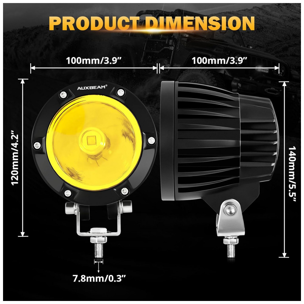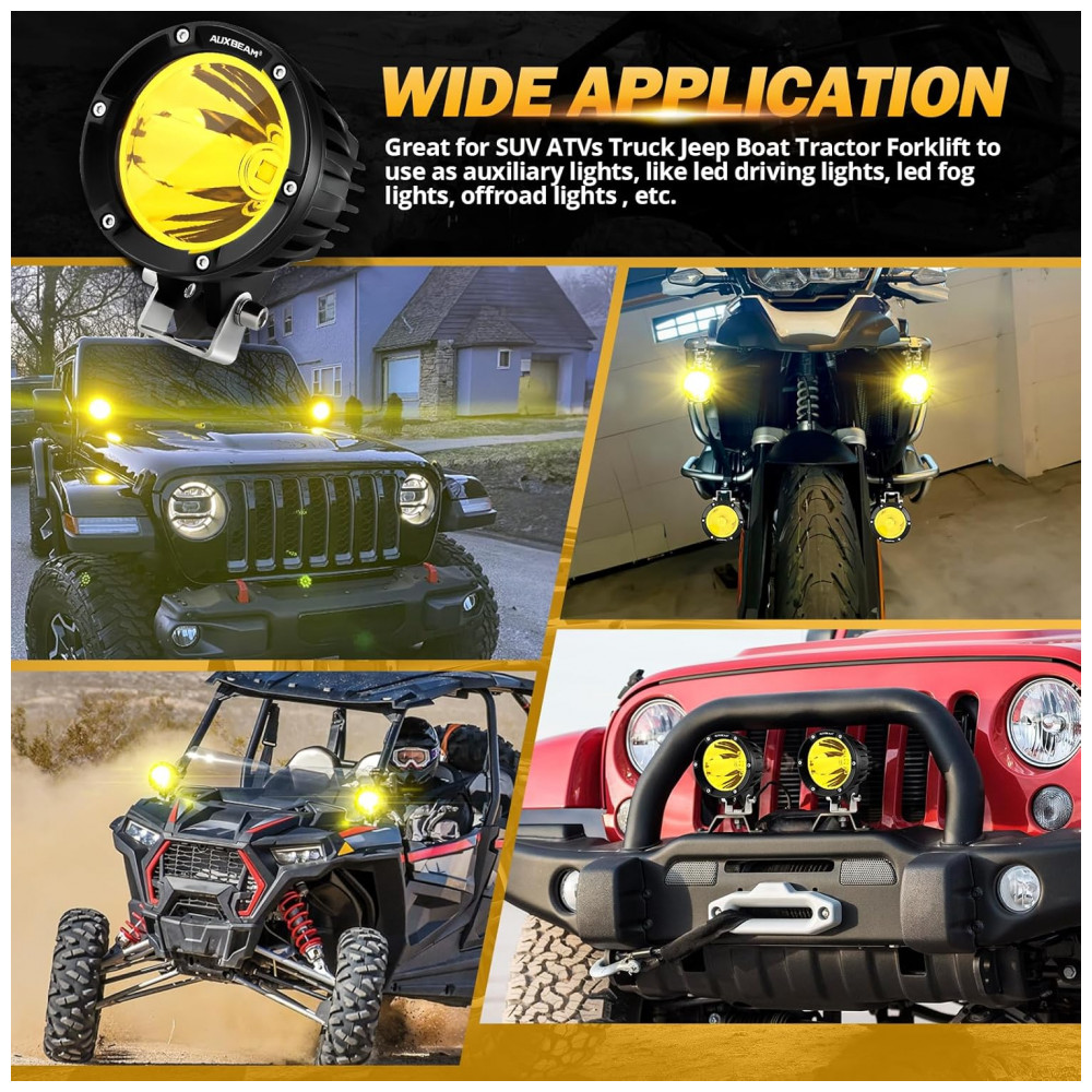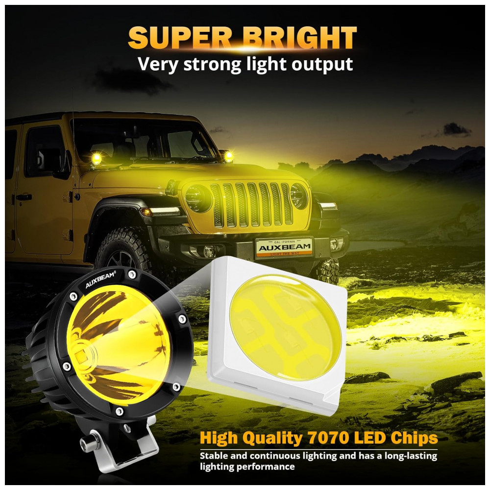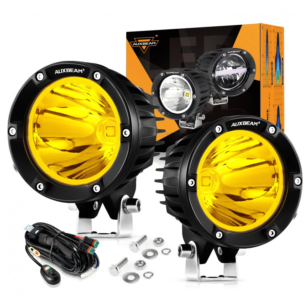 Farol de Milha LED com 7200 Lúmens e Luz Amarela 72W 2Un Auxbeam Preto