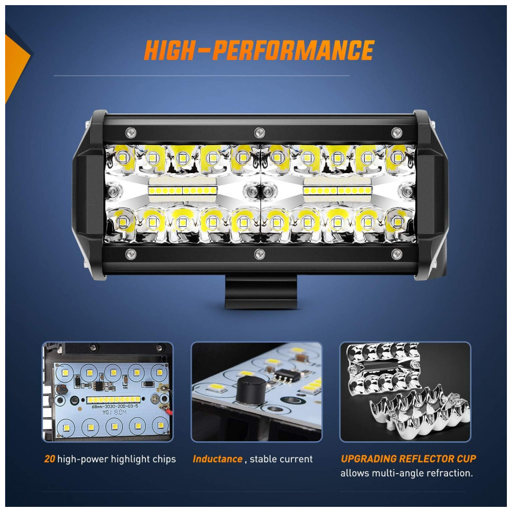 Poderosa barra de luz LED de 120W, chips Led de alta qualidade e lente PC transparente, esta cápsula de LED emite 6000k de luz branca pura, iluminando efetivamente a estrada escura durante a noite