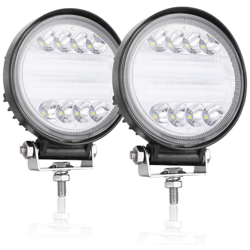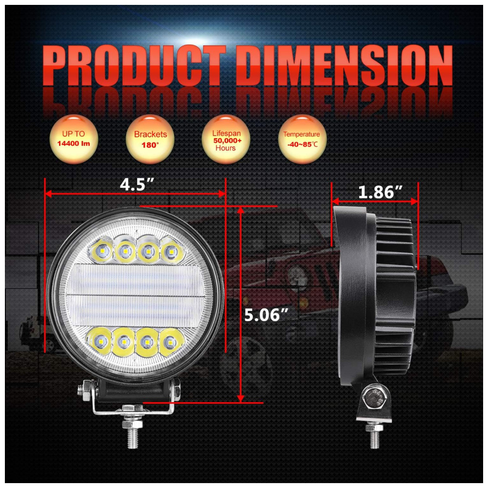 BRILHO INCRÍVEL Com chips LED CREE de alta intensidade de 48pcs, essas luzes LED COMBO redondas de 12,7cm emitem 6000K de luz branca pura, fornecendo 144w e 14,400lm iluminam sua estrada escura para a frente de maneira eficaz, transformam a noite em dia.