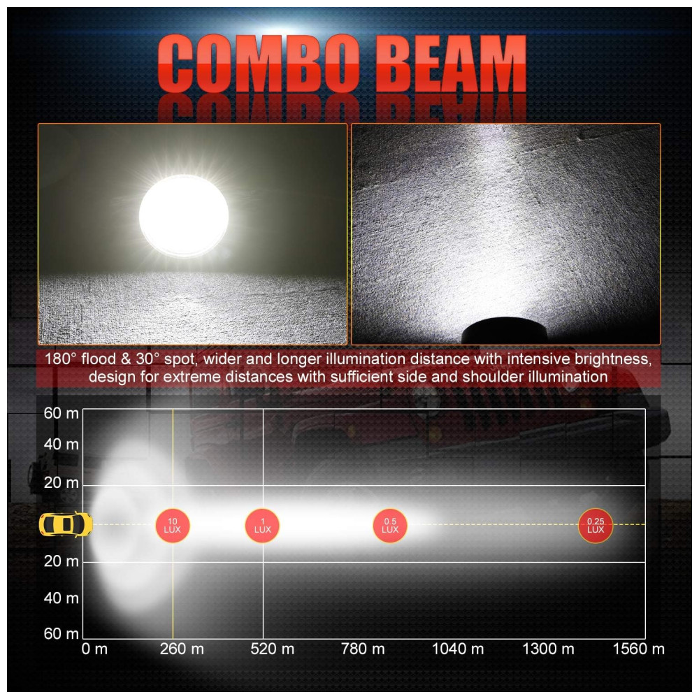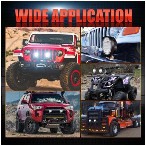 São perfeitamente adequados para a maioria dos jipes, 4×4, caminhões, off road, motocicletas, SUV, ATV, UTV, barcos, equipamentos de construção, iluminação de jardins ou luzes de trabalho para camping e caça