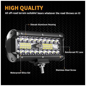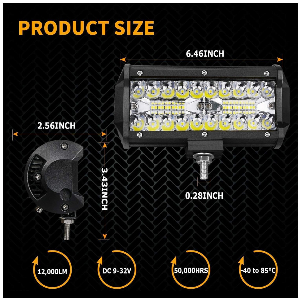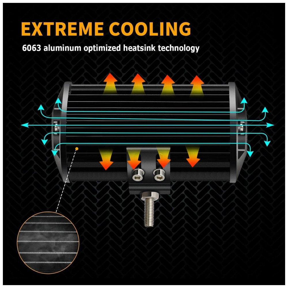 Melhor dissipação de calor: esta barra de luz LED de 7 polegadas é feita de gel de silicone de condução de calor e dissipadores de calor de alumínio fundido espesso, com 10 aletas de resfriamento, que podem maximizar a área de superfície para um resfriamento ideal, melhorando a longa vida útil da luz LED pod de até 50.000 horas.