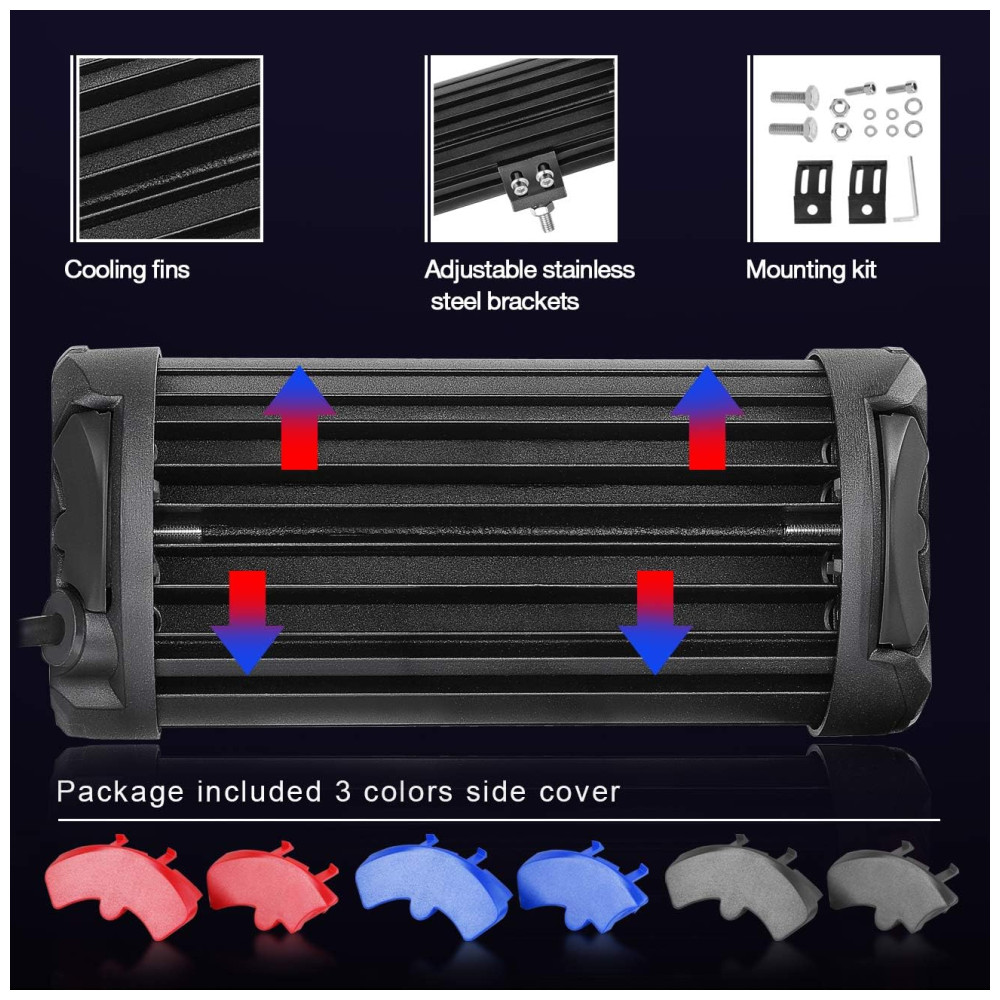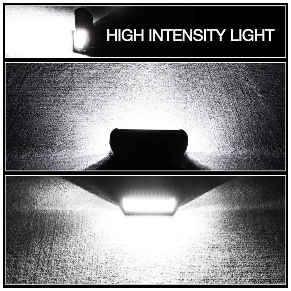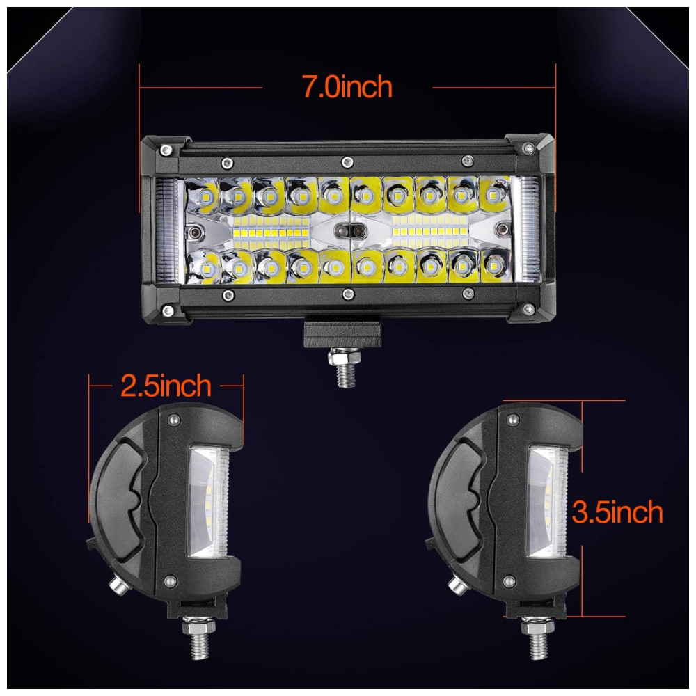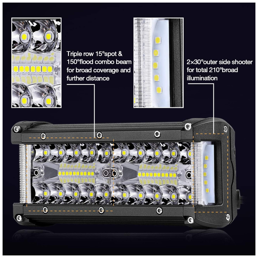COBERTURA ILUMINADA PERFEITA Combinação de feixe combinado perfeito de inundação de 150 e ponto de 15 para obter irradiação de longa distância enquanto cobre um alcance mais amplo, os LEDs de disparo lateral fazem com que a luz de trabalho LED obtenha um alcance iluminado de 210 , não apenas para direção extremamente rápida, mas também excelente para qualquer lugar que você precisar.