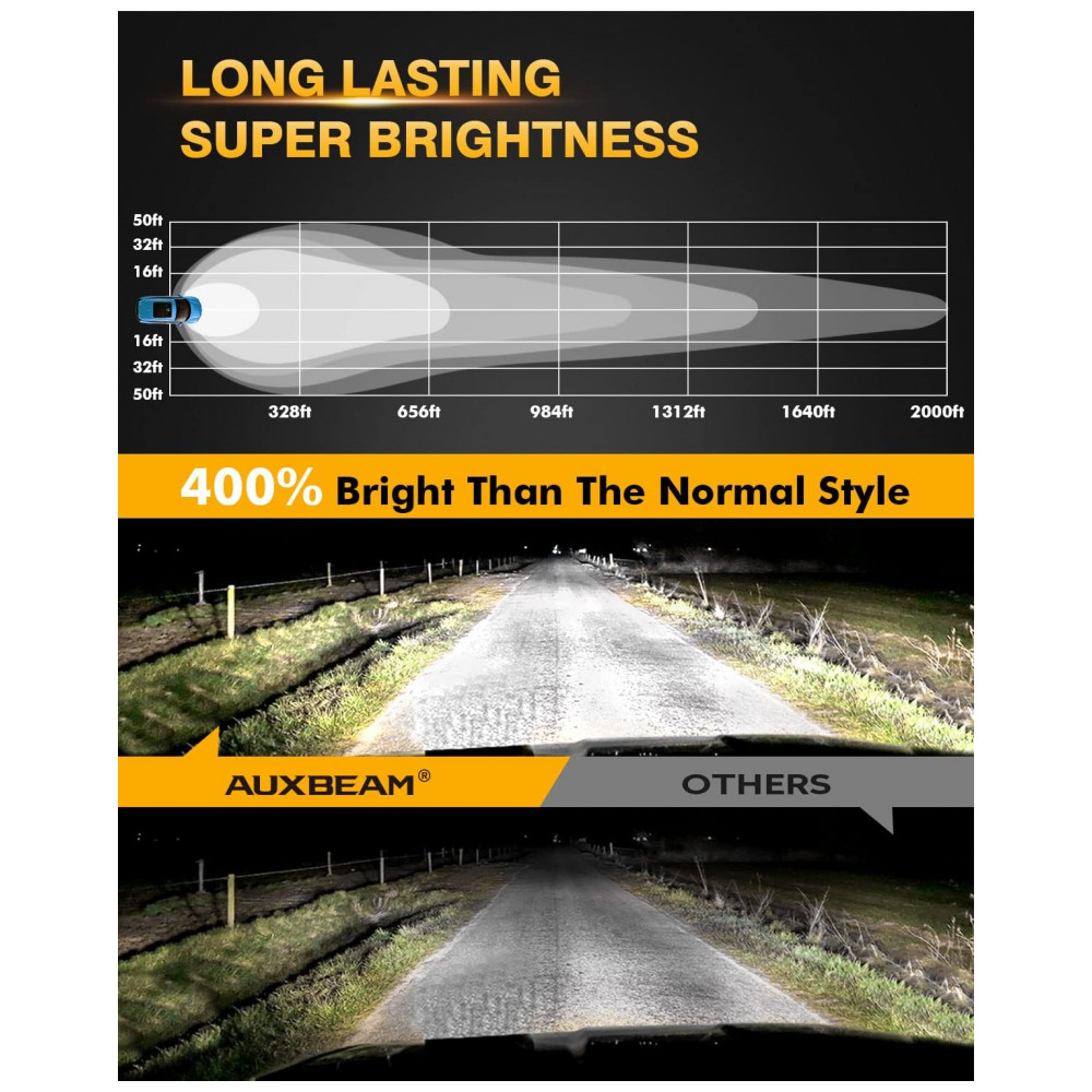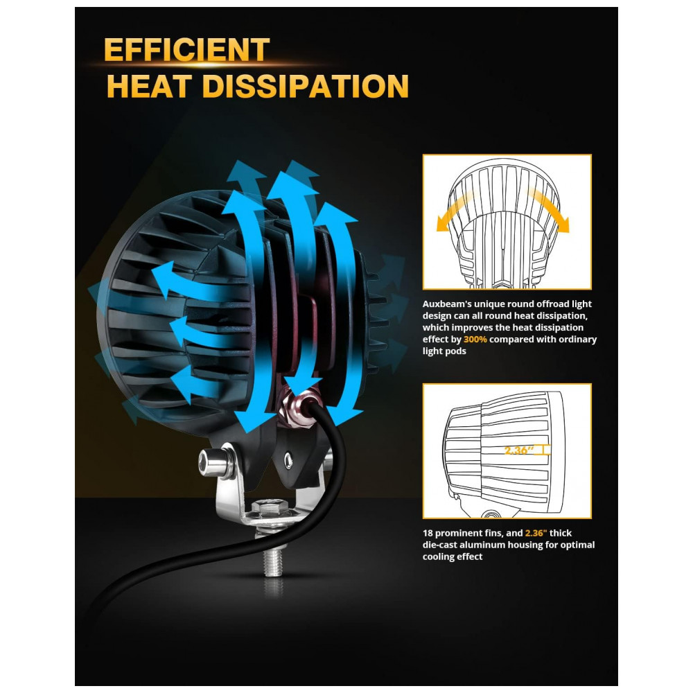 Excelente resfriamento eficiente: As luzes off road de condução de Auxbeam são construídas para durar, com dissipadores de calor de caixa de alumínio espessados e completos que maximizam a área da superfície para um resfriamento eficiente. Isso não apenas melhora o desempenho, mas também prolonga a vida útil em impressionantes 50.000 horas. Além disso, nossos suportes de montagem em aço inoxidável duráveis em forma de U podem ser ajustados até 180 graus, permitindo que você altere a direção da luz para atender às suas necessidades específicas