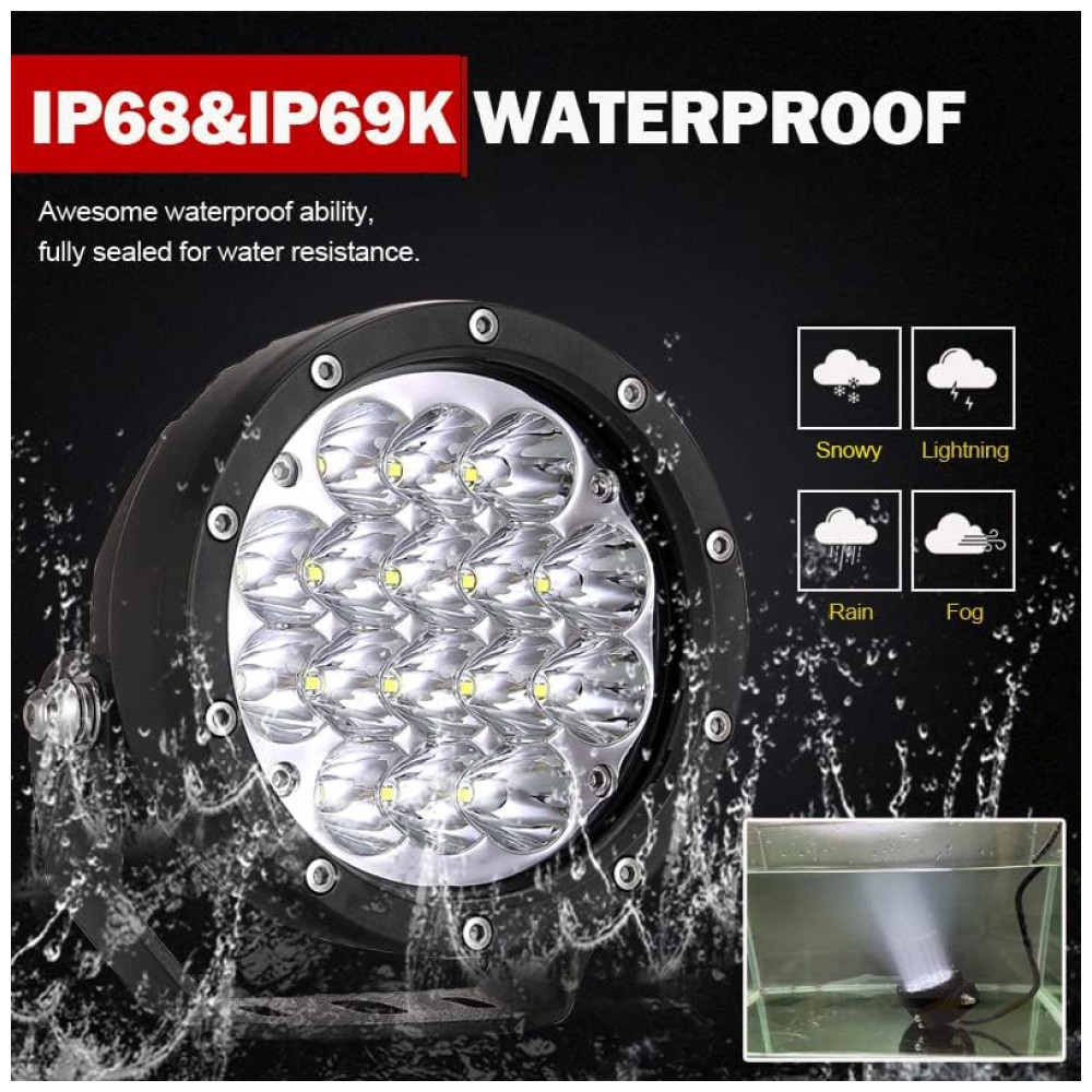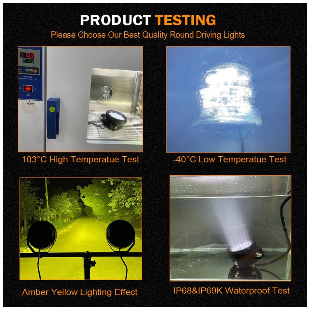Grau impermeável de alto padrão: Os produtos estão em conformidade com os padrões IP68 e IP69K. Projeto de respiro militar aplicado para evitar condensação e nebulização. Aumente a vida útil do produto. Balance as luzes off road pressão diferencial para obter o equilíbrio térmico. Deixe as contas da lâmpada seladas terem melhor dissipação de calor. Melhore o uso da confiabilidade em ambientes extremos.