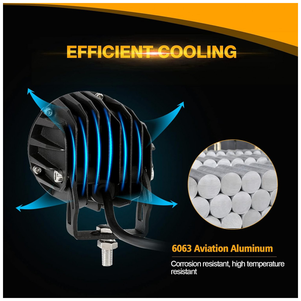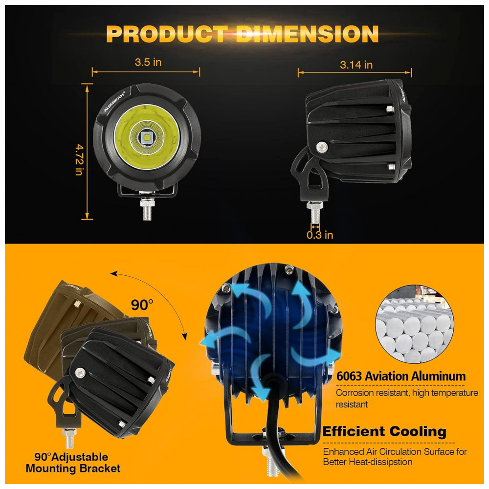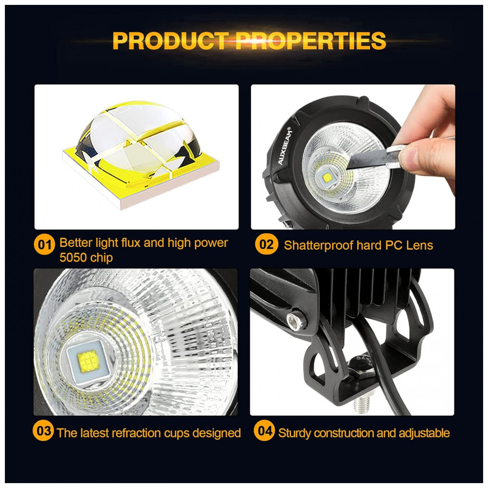 Chip 5050 de alta intensidade para super brilho. Comparado com o chip 3535 comum, as luzes LED Auxbeam de 3,5 polegadas fora de estrada têm 2 chips LED de alta intensidade 5050, pode emitir 5700 6500K luz branca com 3200lm de lúmens iluminará tudo o que você precisa ver