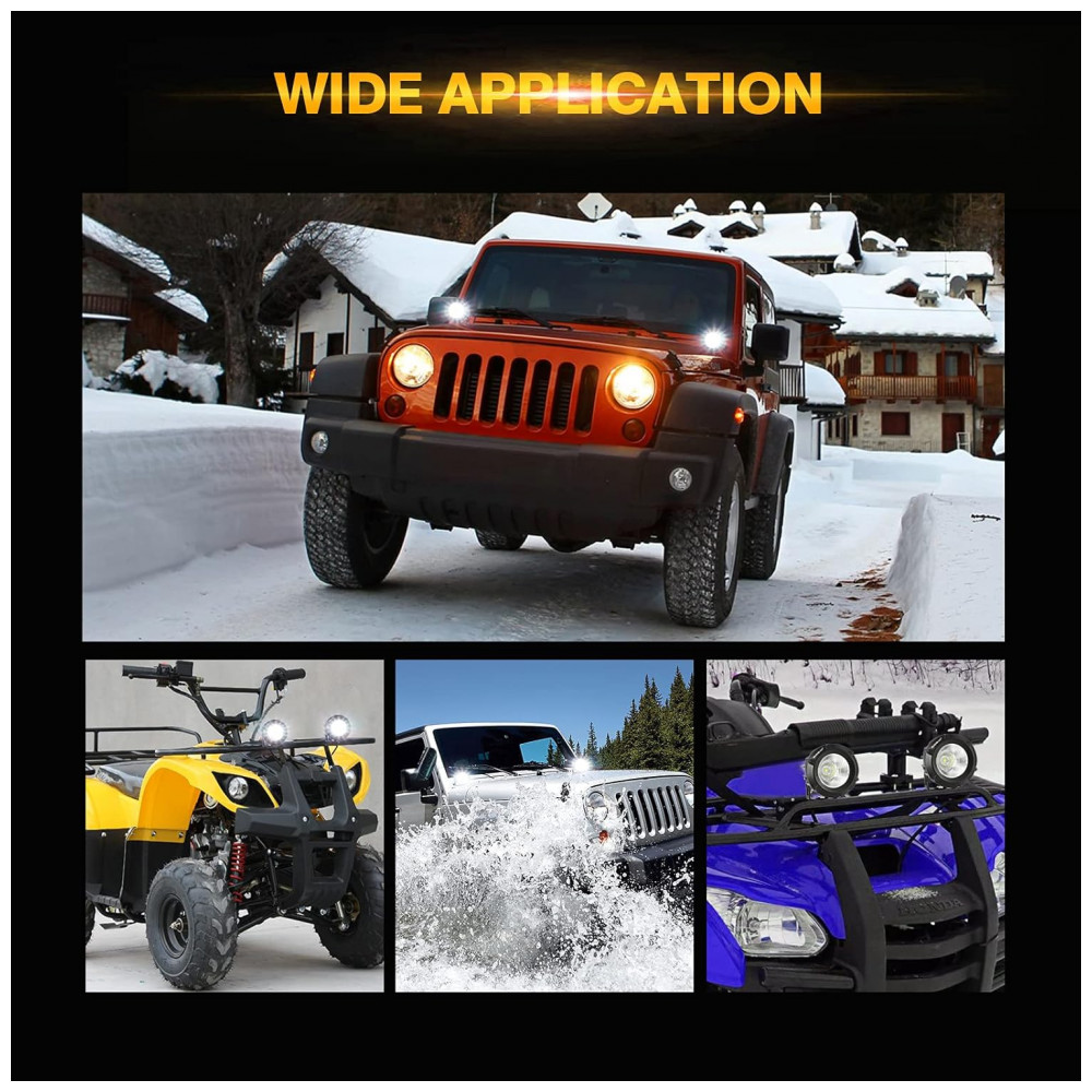 Luzes auxiliares universais. Nossas luzes de pod led vêm com acessórios necessários para facilitar a substituição de luzes de filamento opacas antigas. para quase todos os veículos off road, quadriciclos, UTVs, SUVs, veículos de construção, veículos agrícolas, caminhões, motocicletas, ônibus, pick ups, marítimos, barcos, etc. Tensão de operação de 12 80V