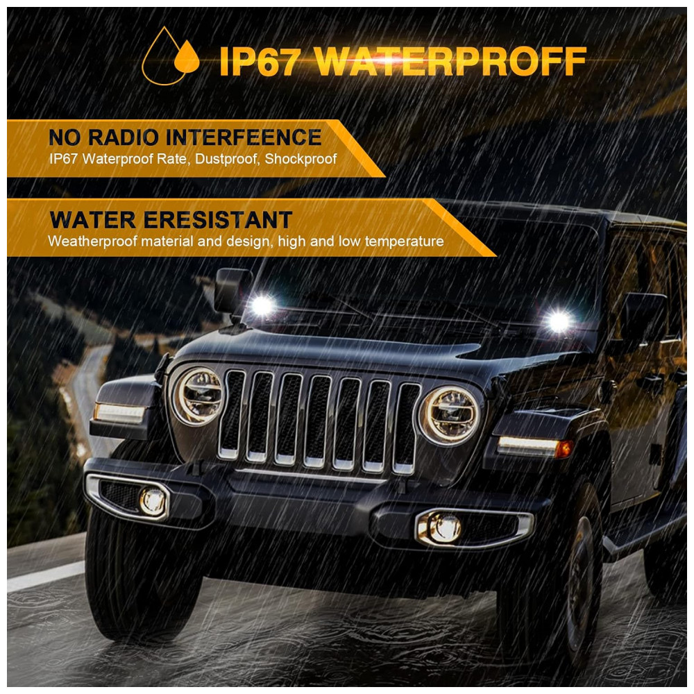 IP67 À prova dágua para desempenho durável. A luz de condução LED possui taxa à prova dágua IP67 e lentes à prova de quebra de PC. Evita com mais eficácia a chuva, neblina, umidade ou poeira para entrar na barra e arruiná la, excelente desempenho à prova dágua, poeira e choque