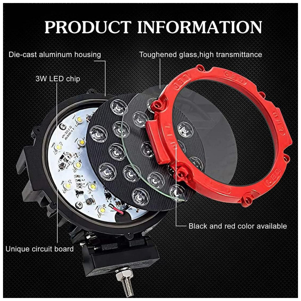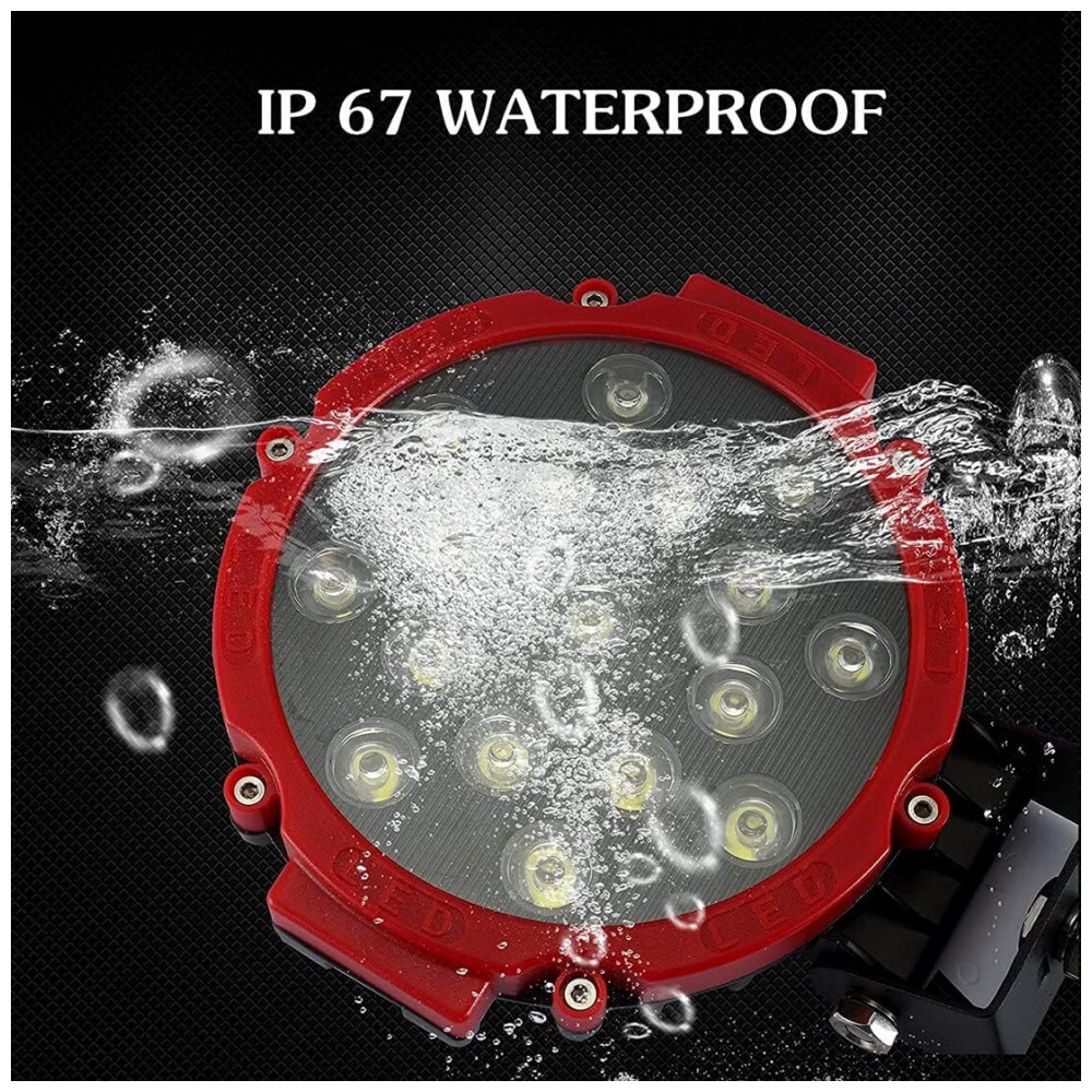 Farol de Milha LED Off Road com 5100 Lúmens e Luz Branca IP68 12V 24V 51W 2Un Spead Vmall Vermelho