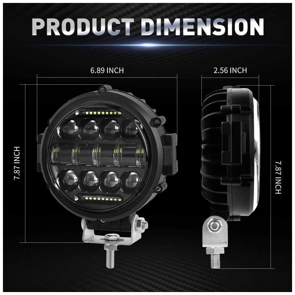 Barra de luz led redonda super brilhante de 7 polegadas Cada luz possui 60W de alta intensidade led a 6.000K de temperatura de cor com 5600LM, pode estender seu campo de visão, proporcionando uma melhor experiência de direção.