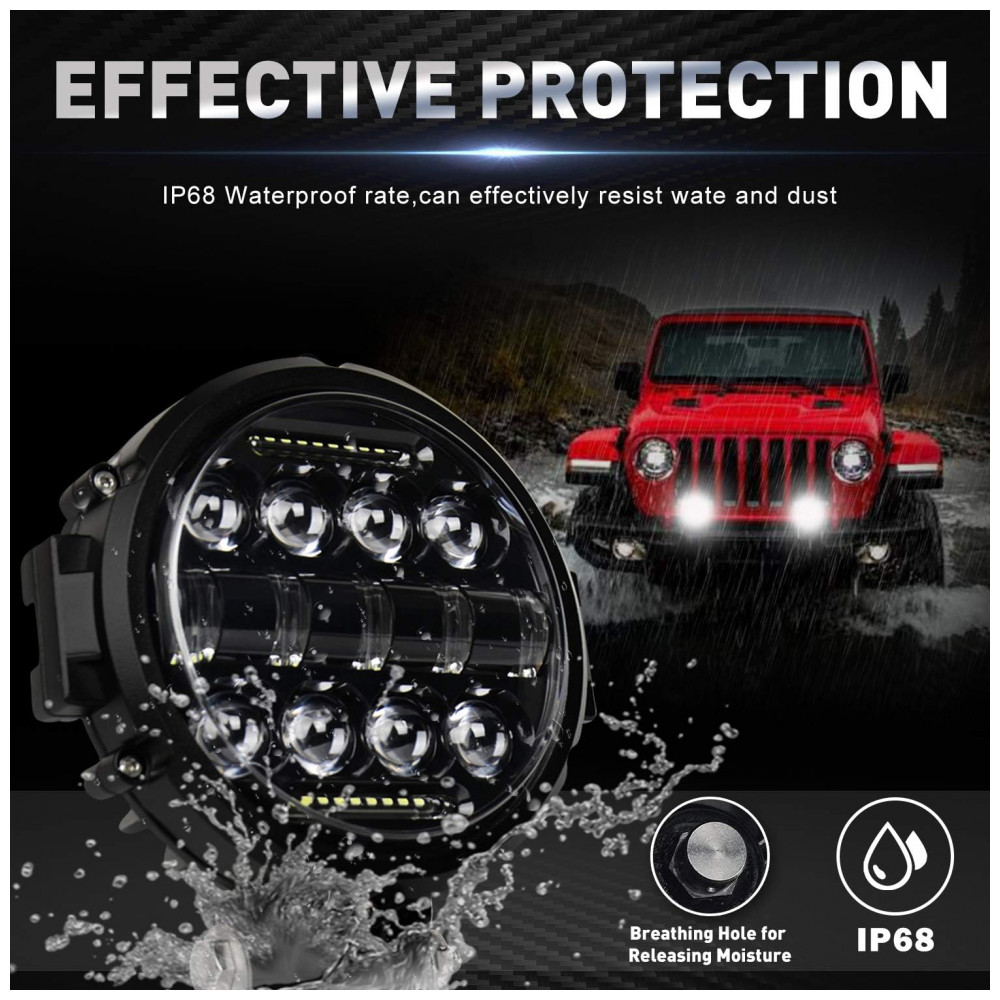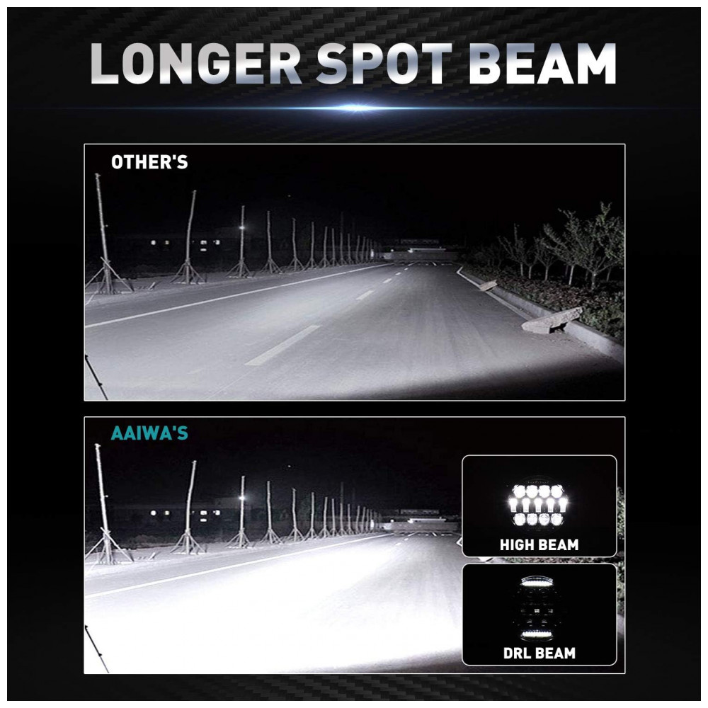 Luz de trabalho LED de alto desempenho com DRL IP68 à prova dágua, pode suportar ambientes agressivos, carcaça de alumínio fundido durável e forte, anticorrosão para chuva e neve. Atualize a superfície da lente do PC com transmissão de alta luz.