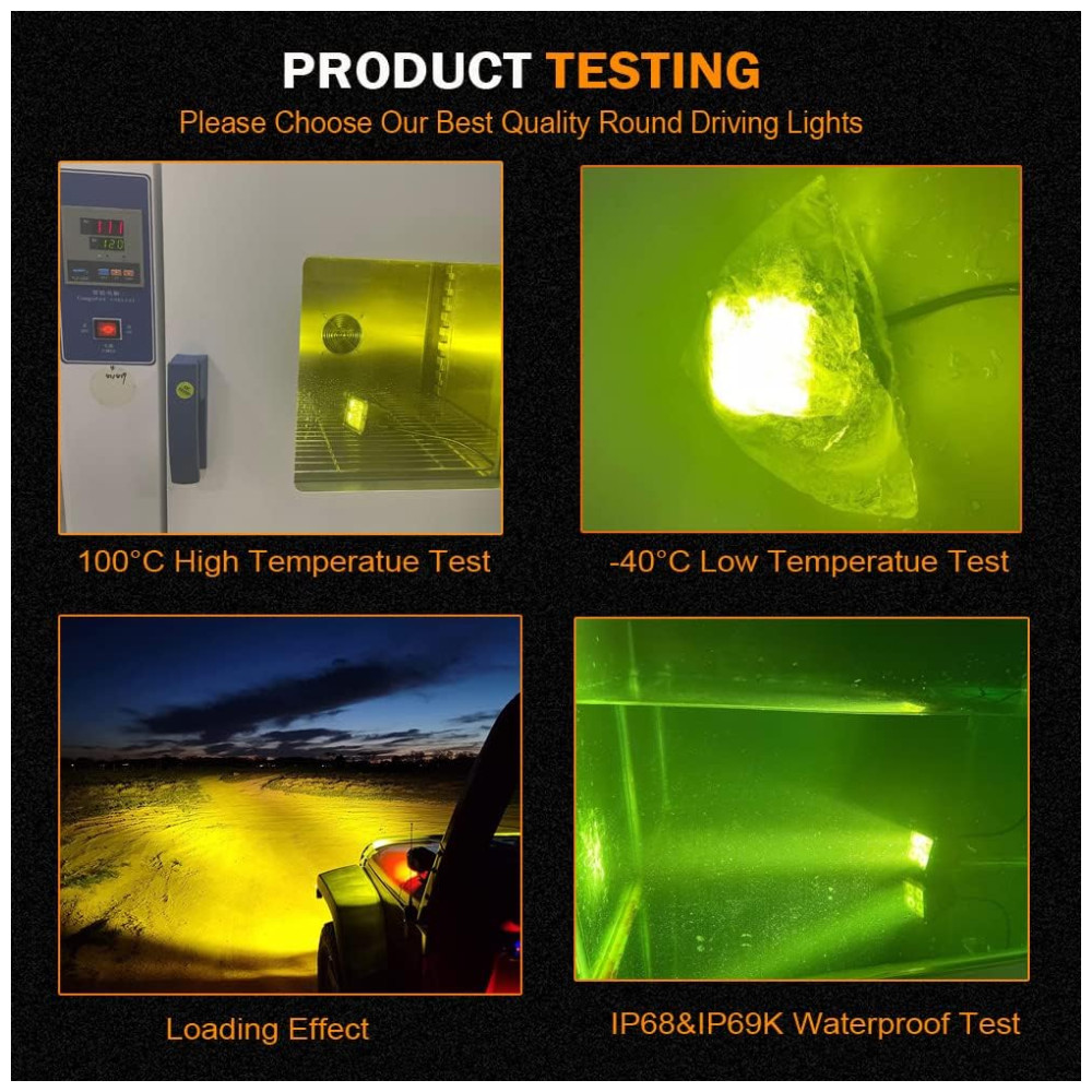 As luzes de condução off road amarelas led estão em conformidade com o padrão IP68 e IP69K. As luzes de nevoeiro de condução amarelas led têm características à prova dágua, à prova de poeira e à prova de choque. Melhore o uso de confiabilidade das luzes de pára choques amarelas à prova dágua em ambientes extremos.