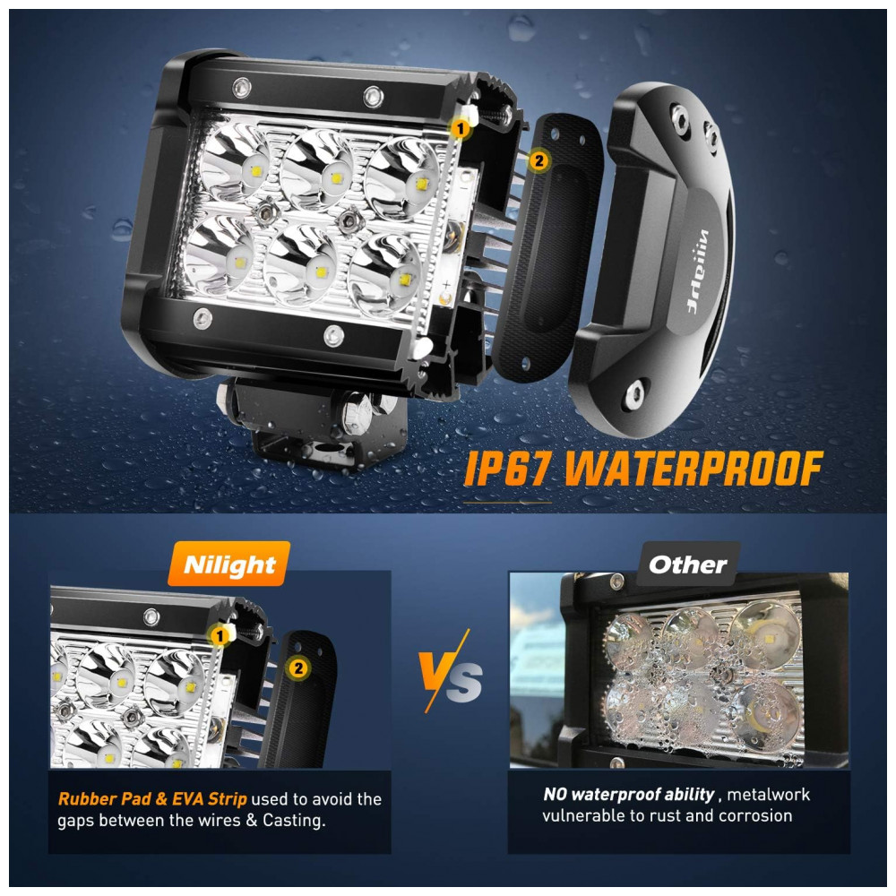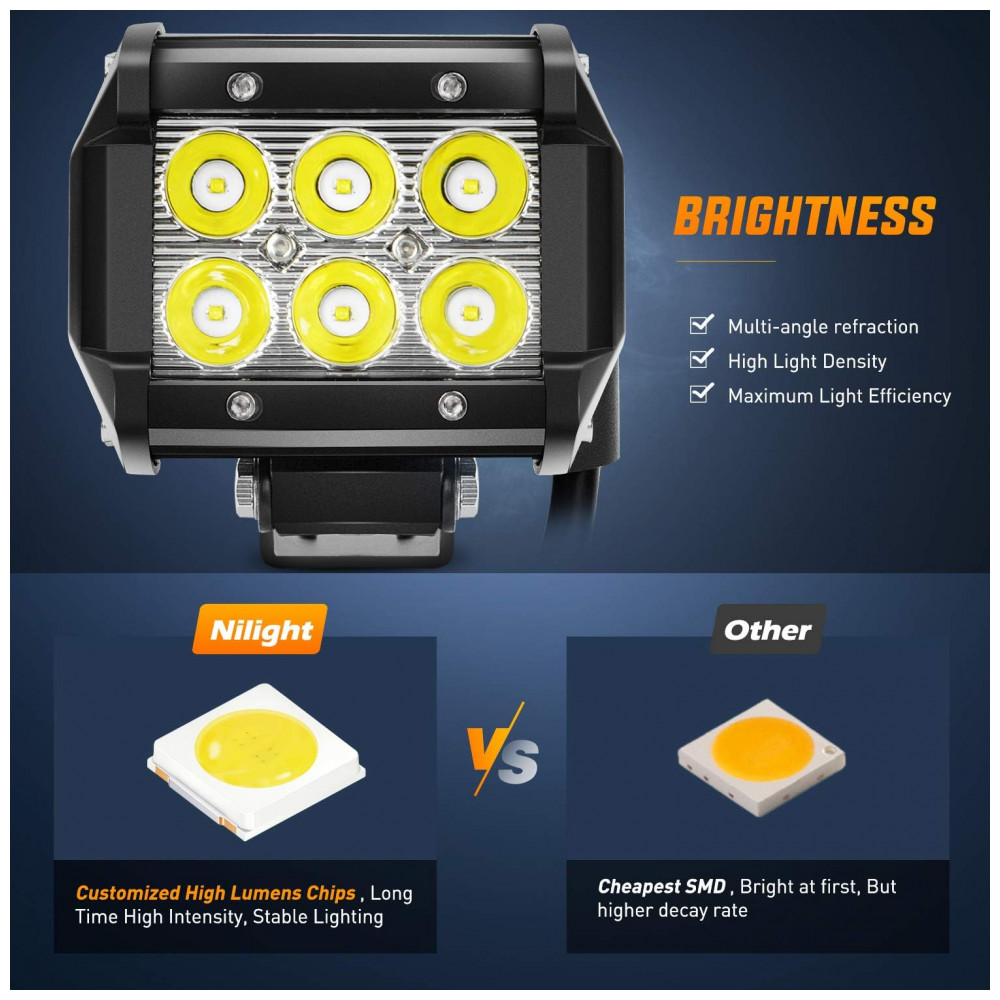 Farol de Milha LED Offroad com 1260 Lúmens e Luz Branca 30V 18W 2Un Nilight Preto