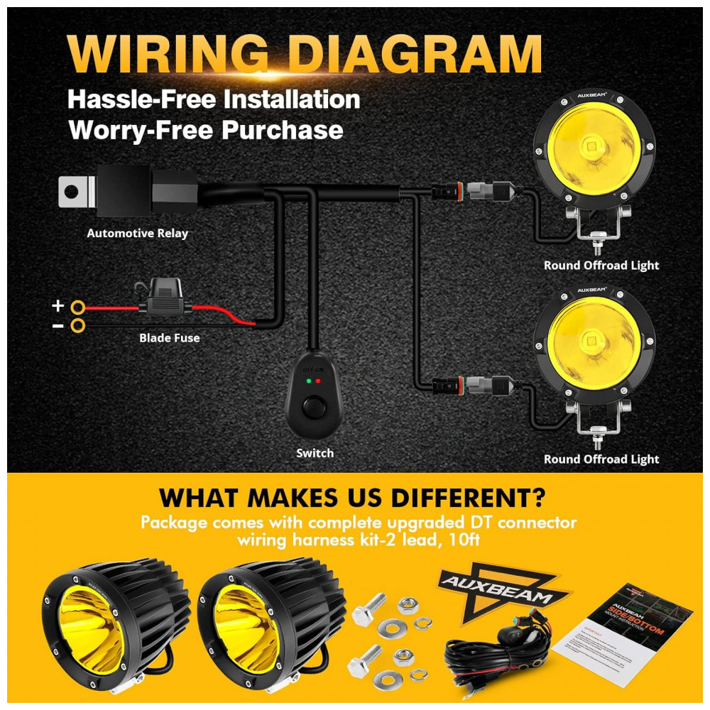 Atualização inteligente As luzes offroad âmbar de 10 centímetros usam a tecnologia EMC para obter um tempo de resposta liga, desliga mais rápido, isolam completamente a onda eletromagnética da interferência do áudio do carro e do computador de direção, acompanham para economizar na direção. Compatível com qualquer tipo de DC 9 32V veículos off road, carros particulares, ATV, UTV, SUV, caminhonete, motocicleta, van, trator, reboque, barco, marítimo, externo e interno, equipamentos de construção, iluminação industrial, agricultura, serviço pesado, etc