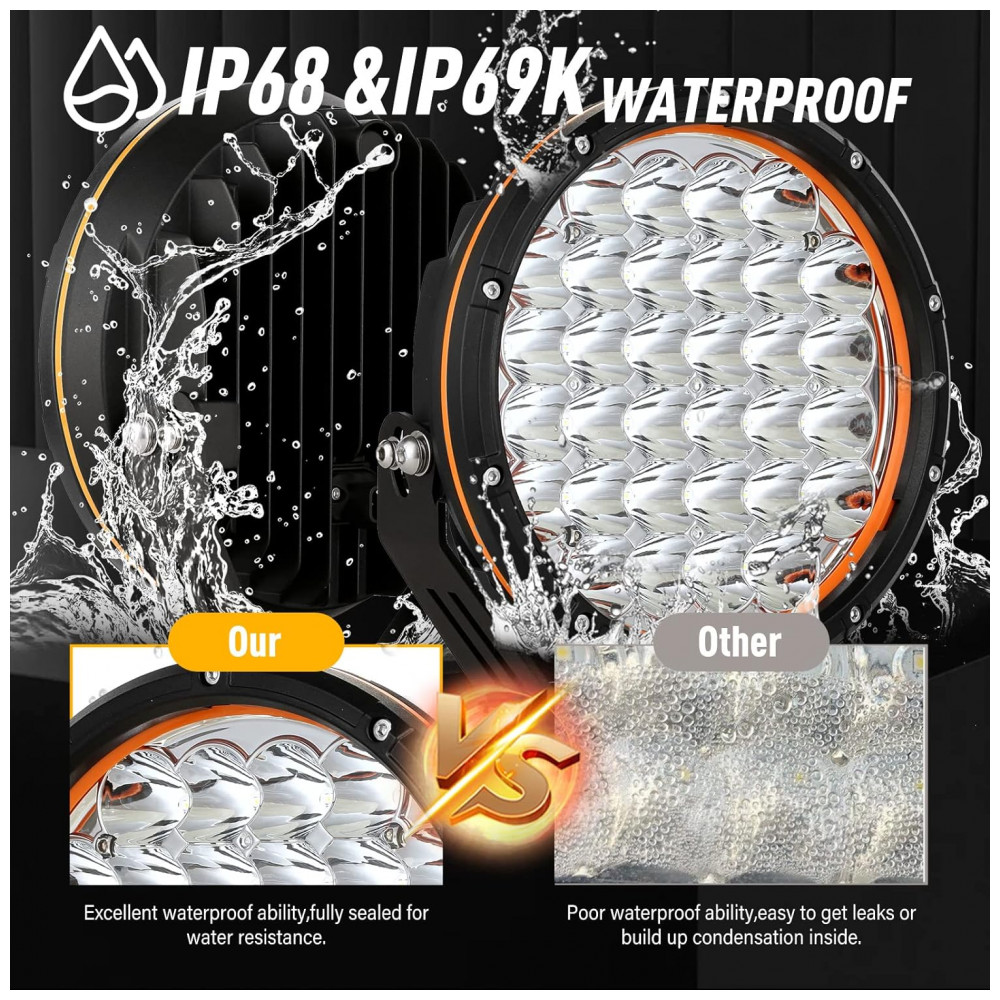 Alto padrão à prova dágua A lâmpada Spot Lights está em conformidade com os padrões IP68 e IP69K. Design de respirador militar aplicado com luz off road para evitar condensação e embaçamento. Prolongue a vida útil das luzes offroad. A pressão diferencial da barra de luz de equilíbrio para alcançar o equilíbrio térmico é alcançada. Deixe as contas de lâmpada seladas terem melhor dissipação de calor. Aumente o uso de confiabilidade em ambientes extremos.