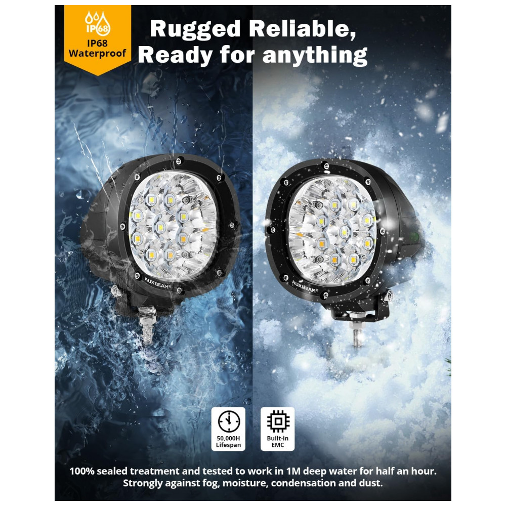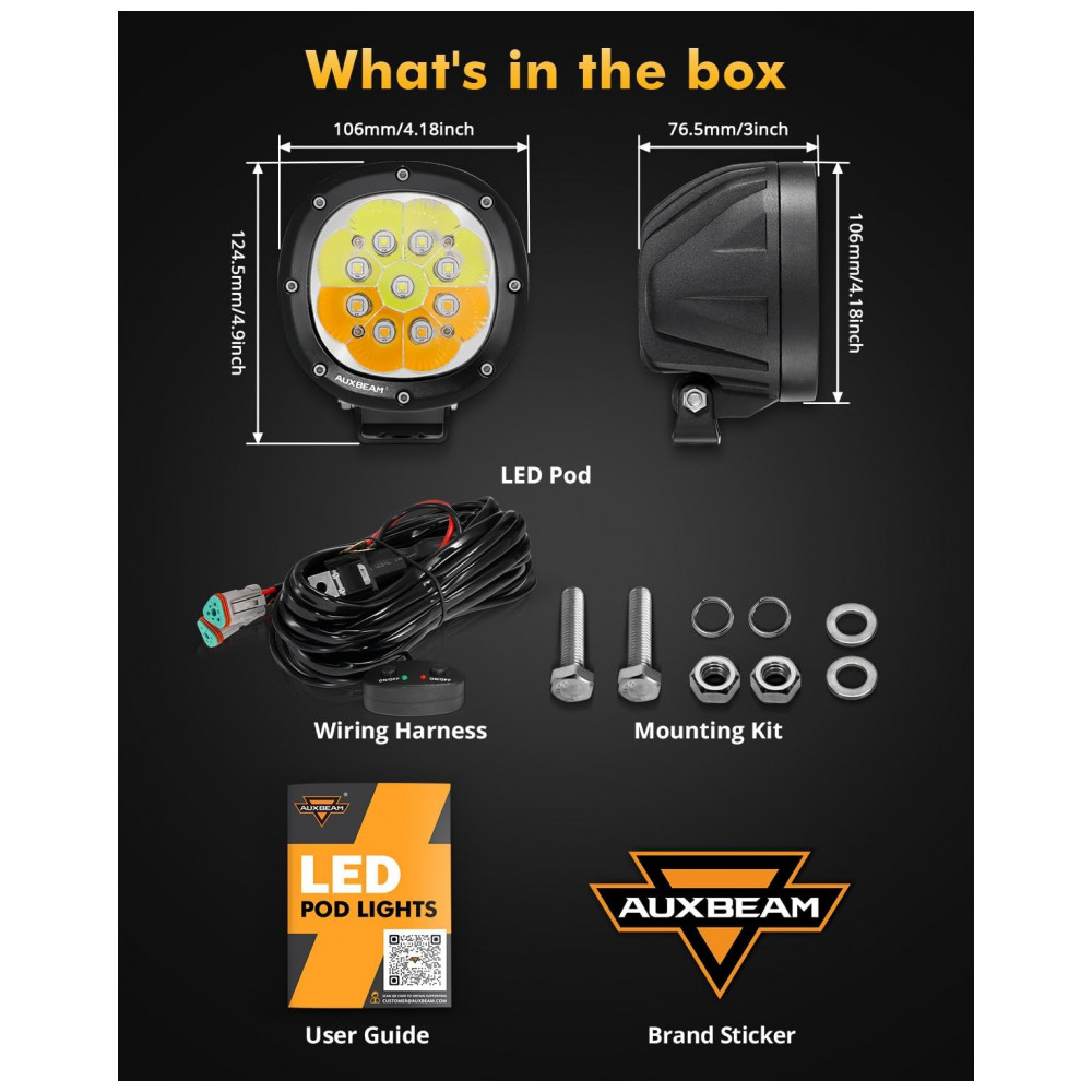 Desempenho de feixe insano Farol de neblina âmbar de led equipado com uma quantidade adicional de LED de 9pcs 5050 chips, feixe de ponto sob 6500K branco e 3000K âmbar. Maximize seu campo de visão para segurança, brilhante para condução off road em qualquer clima ou ambiente severo.