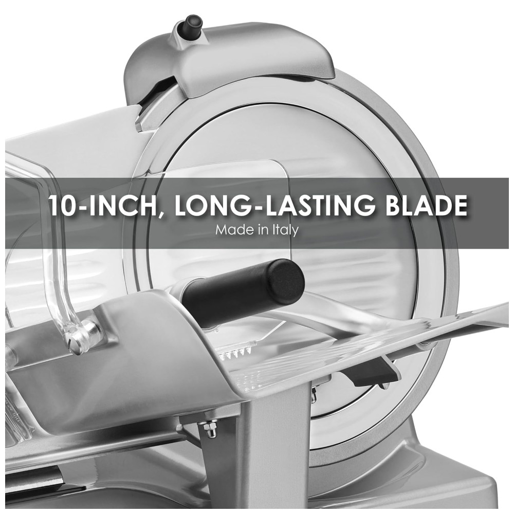 A grande lâmina cromada temperada de 25 cm ajusta se de 1,4 cm, permitindo cortes precisos e duradouros. Sua base robusta, lâmina fixa e design de carro inclinável facilitam a operação e a limpeza.