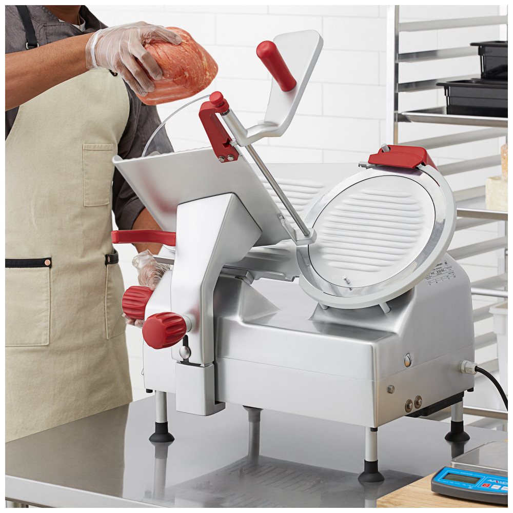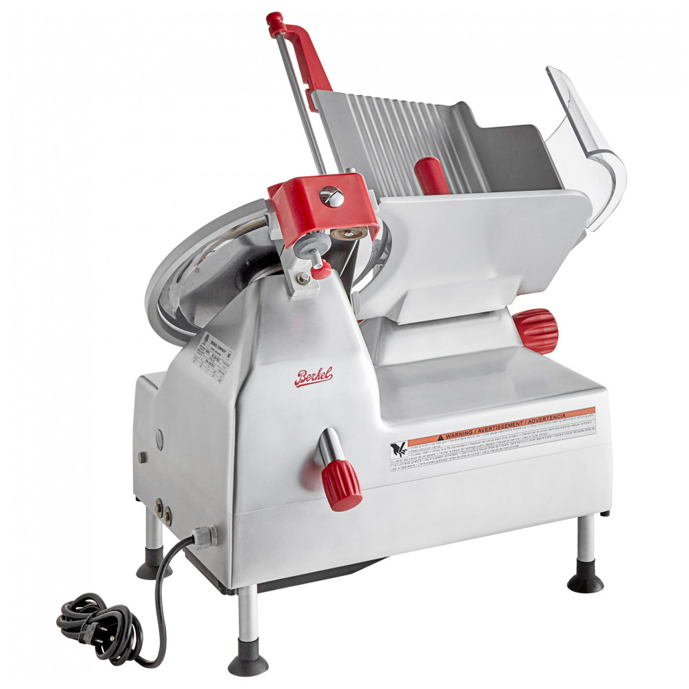 A faca de aço carbono de 30,48 cm do Fatiador Berkel B12ASLC cria fatias uniformes. Com motor de 12 hp e mesa de produto de 45, lida facilmente com grandes cortes. Possui afiador de faca de duas pedras na parte superior para manter a lâmina sempre afiada. Com anel de proteção da faca e travas de segurança, é seguro de usar. Desmonta sem necessidade de ferramentas para limpeza fácil. Ideal para operações de médio volume, este fatiador compacto e econômico se encaixa perfeitamente em cozinhas com espaço limitado. Com capacidade de fatiar precisamente , é perfeito para cortes ultrafinos ou mais grossos. Construído com aço inoxidável durável e acabamento em alumínio anodizado para limpeza rápida e durabilidade. Trabalha com ligação elétrica de 110V.
