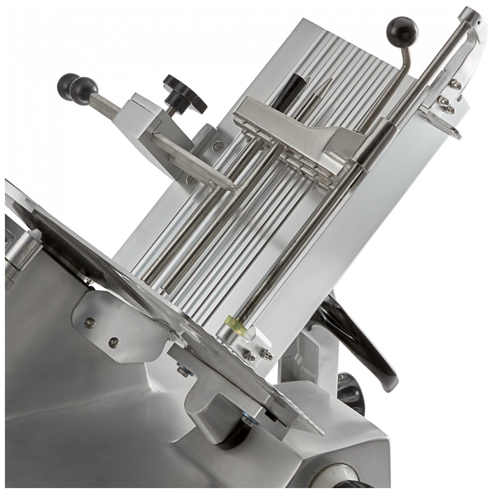 Este fatiador de carne é a solução perfeita para suas necessidades de corte médio. Com motor de 3/4 hp e lâmina de aço inoxidável de 33,02 cm, oferece precisão superior, economizando tempo e trabalho. Com controle manual, você tem supervisão constante e precisão no processo de corte. A bandeja generosa de 11 x 11 cm permite cortar desde grandes presuntos até salames, com ajuste de espessura. Fácil de usar e seguro, é ideal para delis, açougues e mercados. Requer conexão elétrica de 110V.