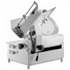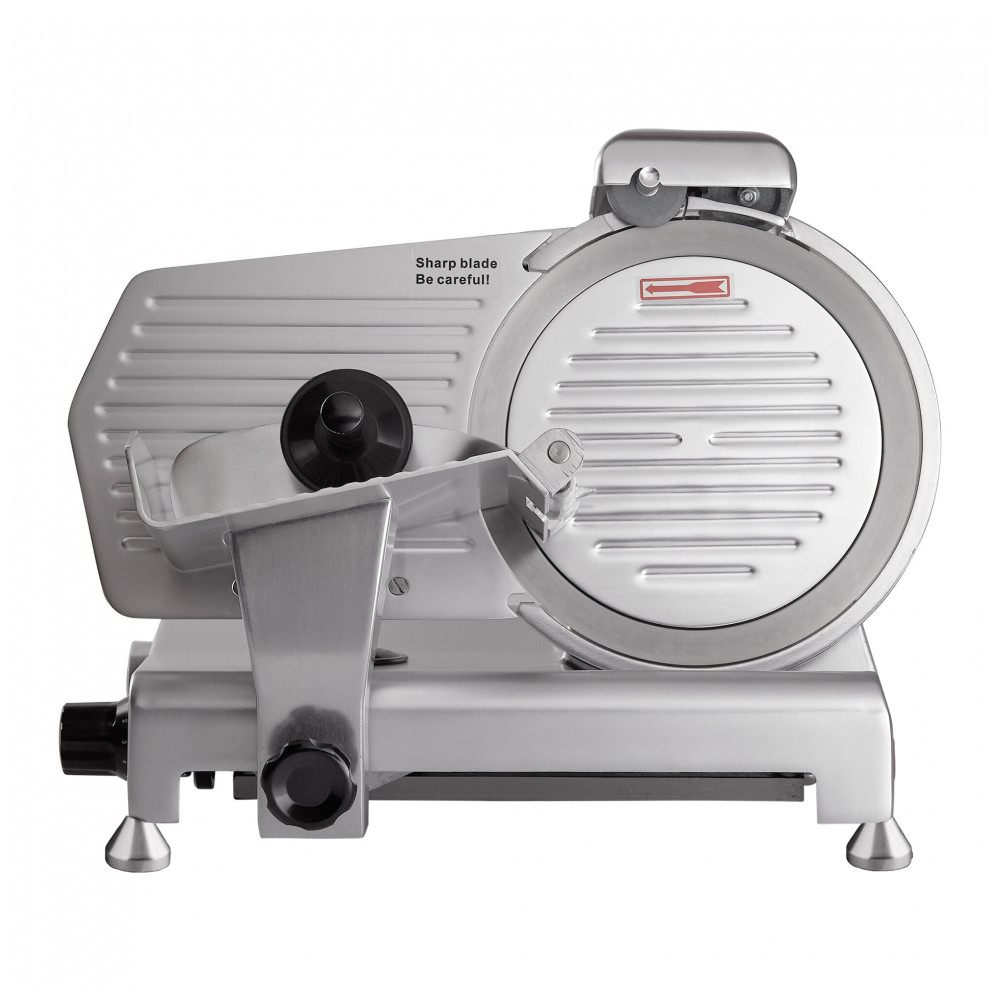 A lâmina de aço inoxidável de 25,4 cm corta fatias de até 30,48 cm de espessura, com afiação embutida para manter a lâmina como nova. O botão de espessura ajustável permite fatiamento preciso. Construção de alumínio de alta qualidade com bandeja. O carrinho de alimentação manual desliza suavemente para fácil operação e pode ser removido para limpeza. Ideal para pequenas operações de corte de carne, esta cortadora leve fornece 1/3 hp de potência para fatiar rapidamente carnes ou vegetais para sanduíches, pizzas e aperitivos. Perfeita para aplicações de baixo volume, onde a cortadora é usada menos de 1 hora por dia, esta unidade é uma ótima escolha para cafeterias, pizzarias, pequenos restaurantes e serviços de buffet. Equipada com afiação embutida para conveniência. A lâmina de aço inoxidável é resistente à corrosão e mantém uma borda afiada para fatiar. Anel de segurança fixo para prevenir contatos acidentais com a lâmina. Compacta e fácil de limpar, ideal para negócios pequenos. Tamanho perfeito para balcão de cafeterias ou pequenos restaurantes, podendo ser movida para limpeza mais profunda.
