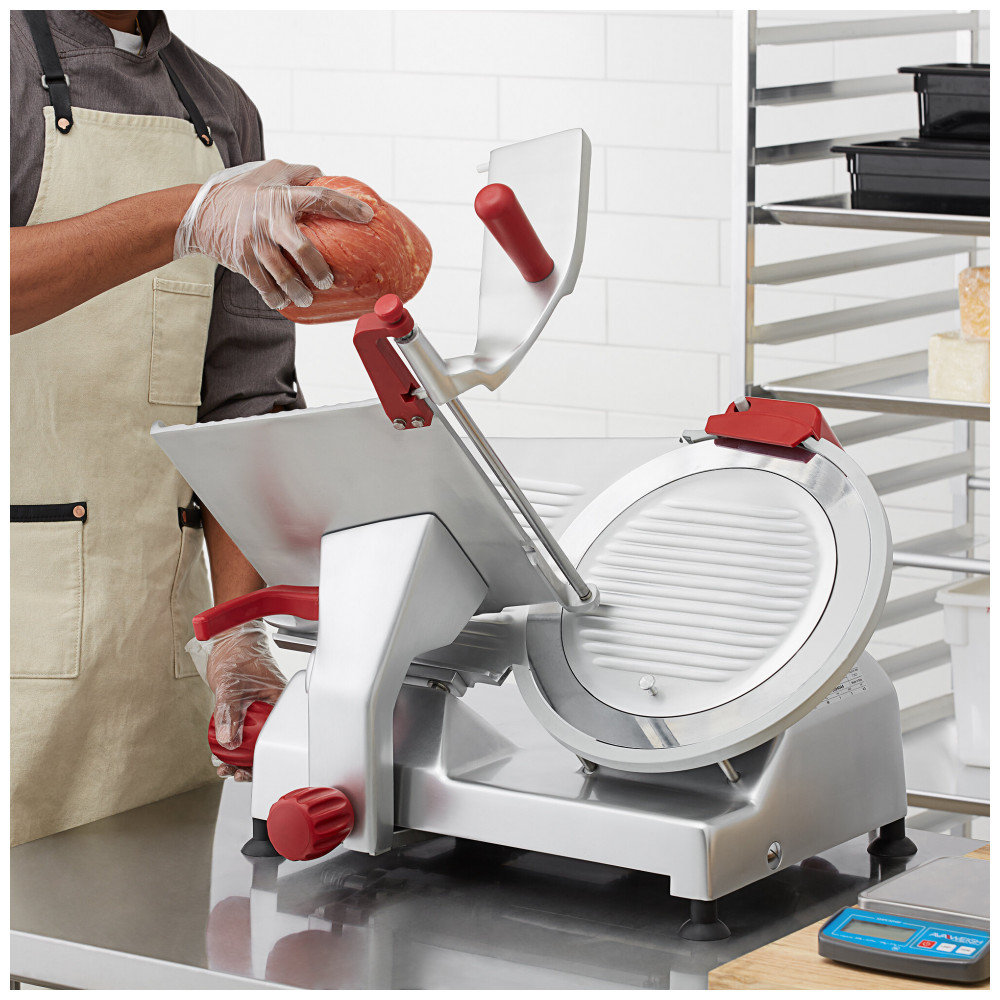 O Fatiador de Carne Manual Berkell B14SLC 14 apresenta uma lâmina de aço carbono de 35,56 cm de comprimento que cria fatias uniformes.Com um motor de 12 hp e uma mesa, lida facilmente com tamanhos grandes de produtos. Possui afiador de facas montado na parte superior, garantindo uma lâmina sempre afiada e anel de proteção de faca para uso seguro. Desmonta sem necessidade de ferramentas para limpeza fácil. Ideal para operações de médio volume, este compacto fatiador economiza espaço e se encaixa perfeitamente em cozinhas com espaço limitado. Eficiente, durável e fácil de limpar, é a escolha ideal para fatiar carnes, queijos e outros produtos de forma consistente e precisa.