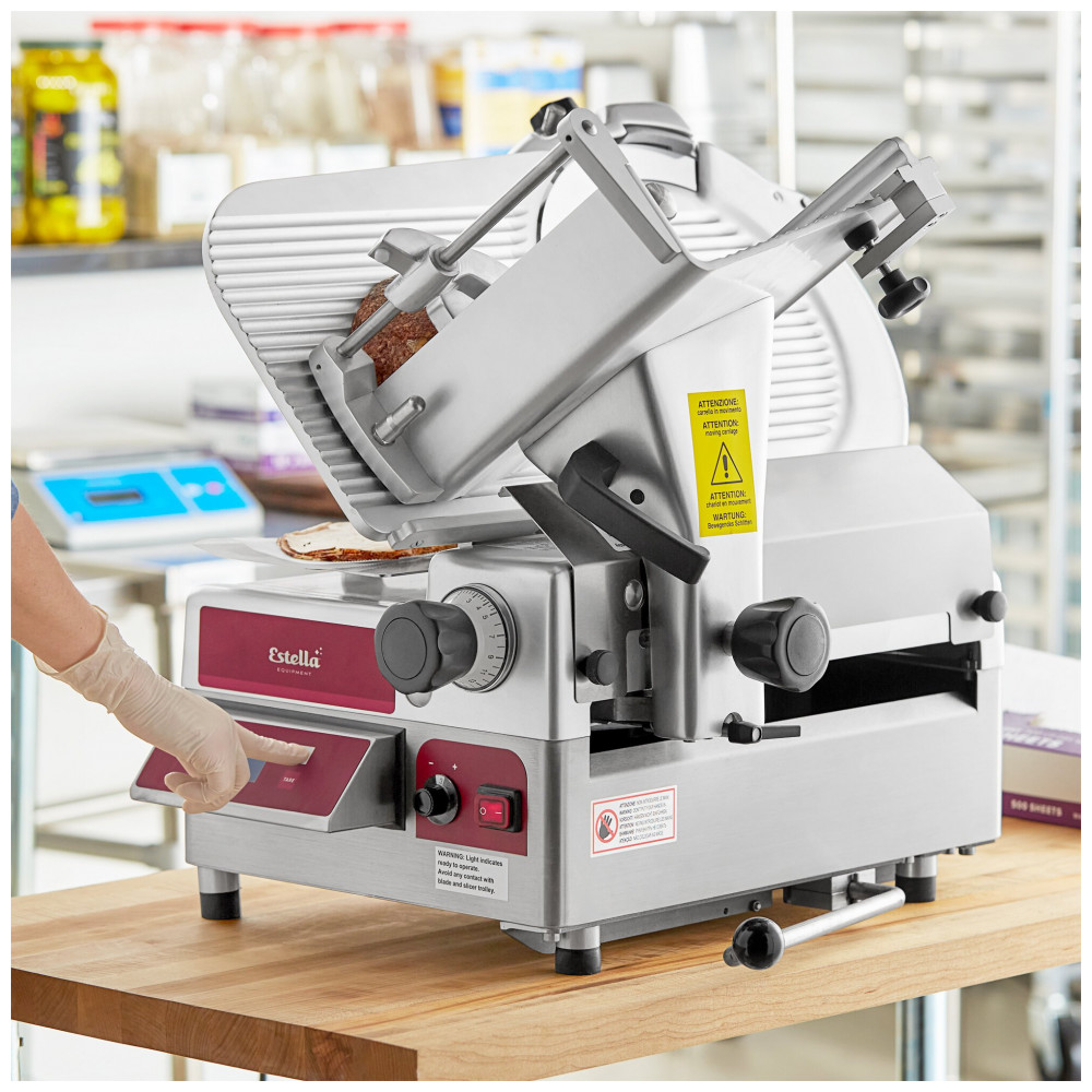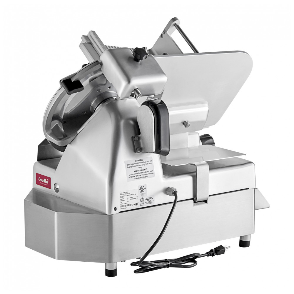 A Fatiadora Automática de Carne Estella SLAS13 apresenta uma lâmina de aço inoxidável de 33,02 cm afiada como navalha para cortes precisos. Classificada para mais de 8 horas de uso por dia, esta fatiadora é eficiente, operando automaticamente com a opção de uso manual. Possui um motor potente de 3/4 hp para fatiar queijos e carnes sem esforço. Com uma lâmina afiada, é perfeita para delicatessens, restaurantes e supermercados de alto volume. A operação automática aumenta a velocidade e a eficiência, permitindo que você se concentre em outras tarefas. Possui balança embutida e contador de fatias para medir produtos facilmente. Com um stop de espessura montado, ajuste rapidamente a espessura dos cortes. Desmonta facilmente para limpeza completa.