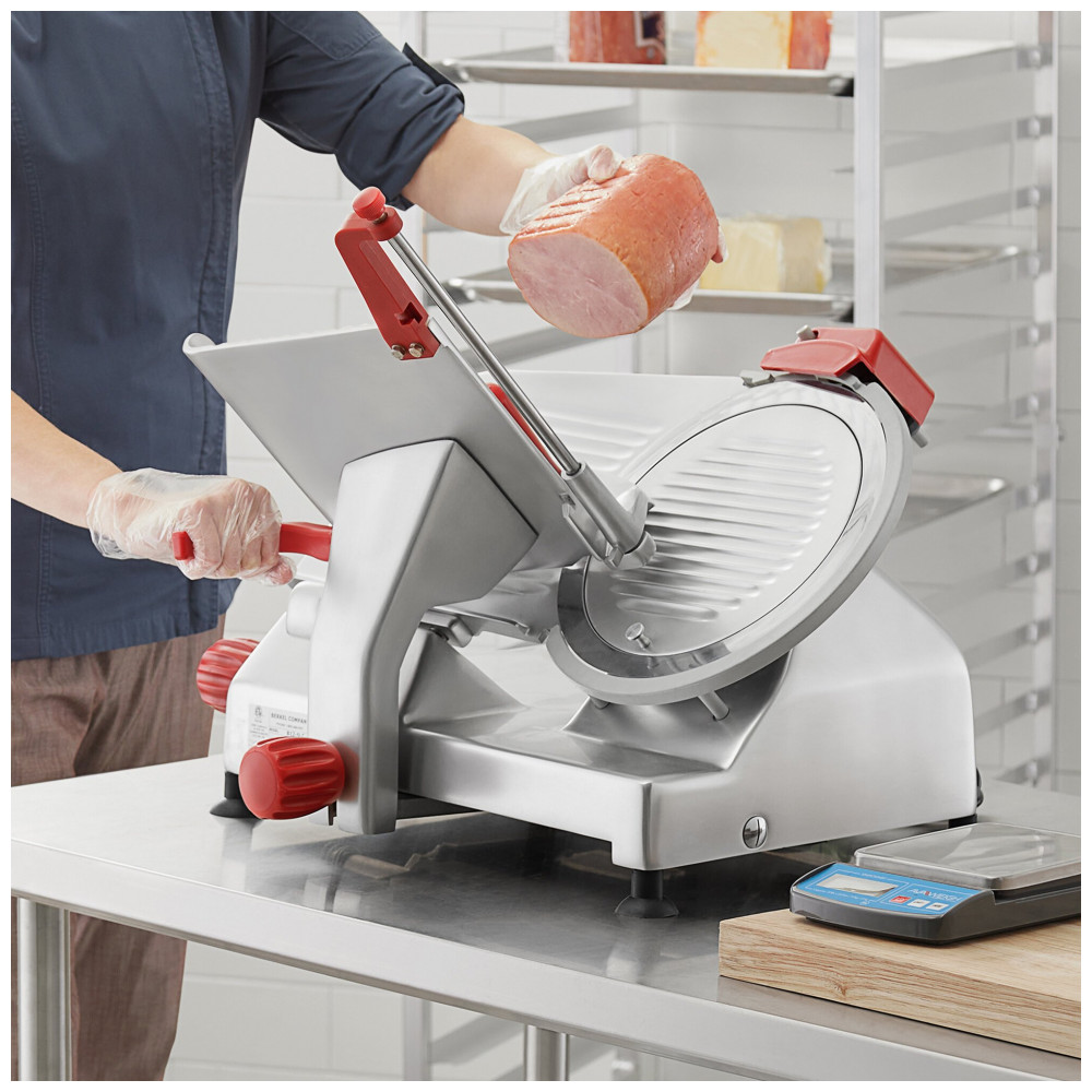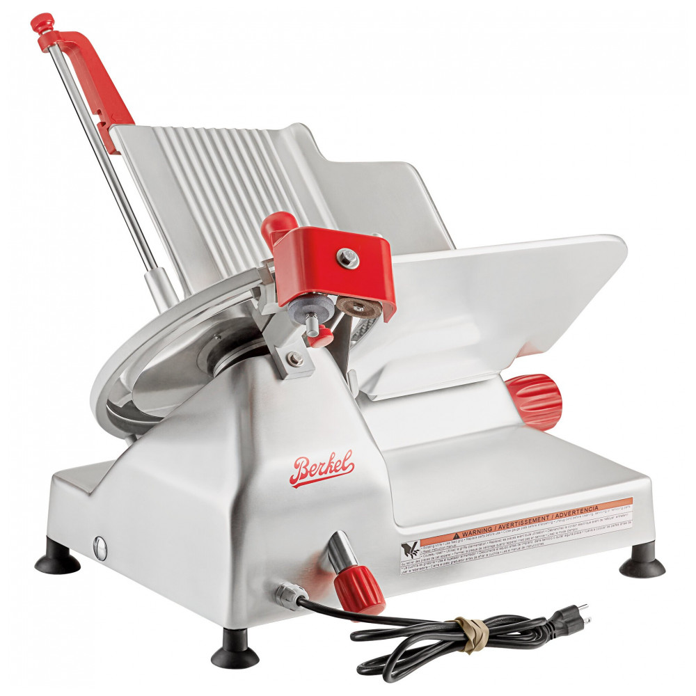 A Fatiadora de Carne Manual Berkel B12SLC proporciona fatias uniformes com espessuras de até 23 mm. Com um motor de 12 hp e mesa de 114 cm, lida facilmente com produtos de grande porte. Possui um afiador de facas de duas pedras na parte superior para manter a lâmina sempre afiada. Com anel de proteção e recurso de baixa voltagem para uso seguro, é desmontável sem ferramentas para limpeza fácil. Ideal para operações de médio volume, esta unidade compacta e economizadora de espaço se encaixa perfeitamente em cozinhas com espaço limitado. Construída em aço inoxidável durável, fácil de limpar e com longa durabilidade. Requer uma conexão elétrica de 110V.