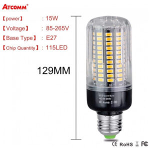 A lâmpada Fengyan Home Bulbs 1pcs 15W E14 E27 Ampoule LED Corn Bulb é uma lâmpada LED do tipo milho, desenvolvida para iluminação residencial eficiente e decorativa. Com potência de 15W, funciona na faixa de voltagem de 85-265V, com tecnologia LED SMD 5733 que garante alta eficiência luminosa e baixo consumo de energia. Possui luz quente (Warm White) que torna os ambientes mais acolhedores e confortáveis. Conta com tecnologia flicker-free, que evita o cintilamento da luz, proporcionando maior conforto visual. Seu formato spotlight permite uma iluminação direcionada, ideal para lustres e pontos de destaque na decoração. Compatível com bases E14 e E27, essa lâmpada é prática e versátil para diferentes tipos de soquetes.