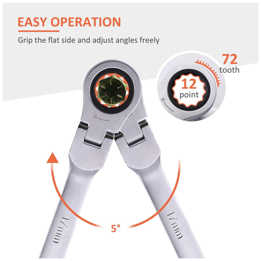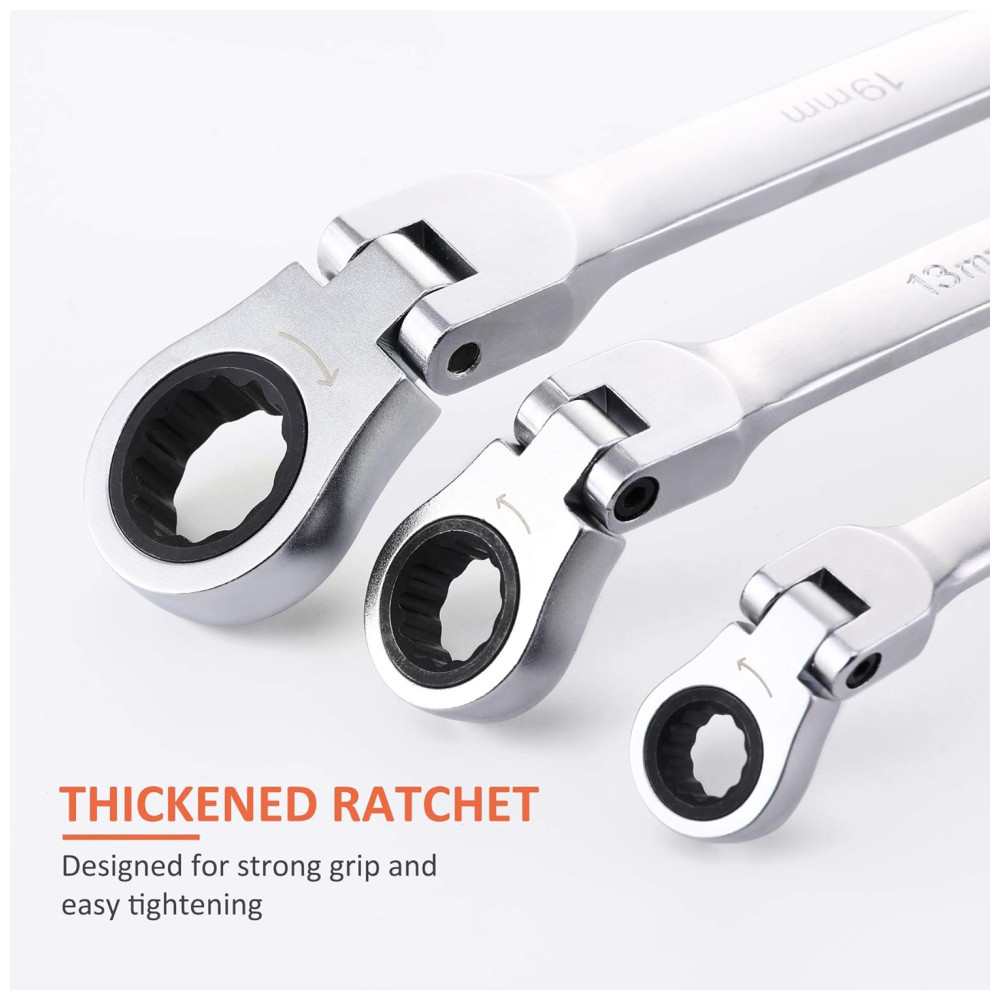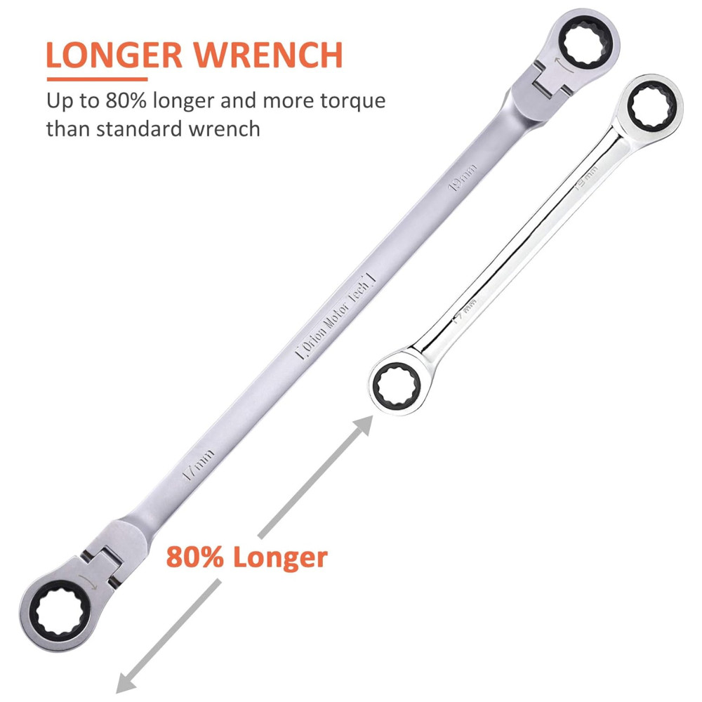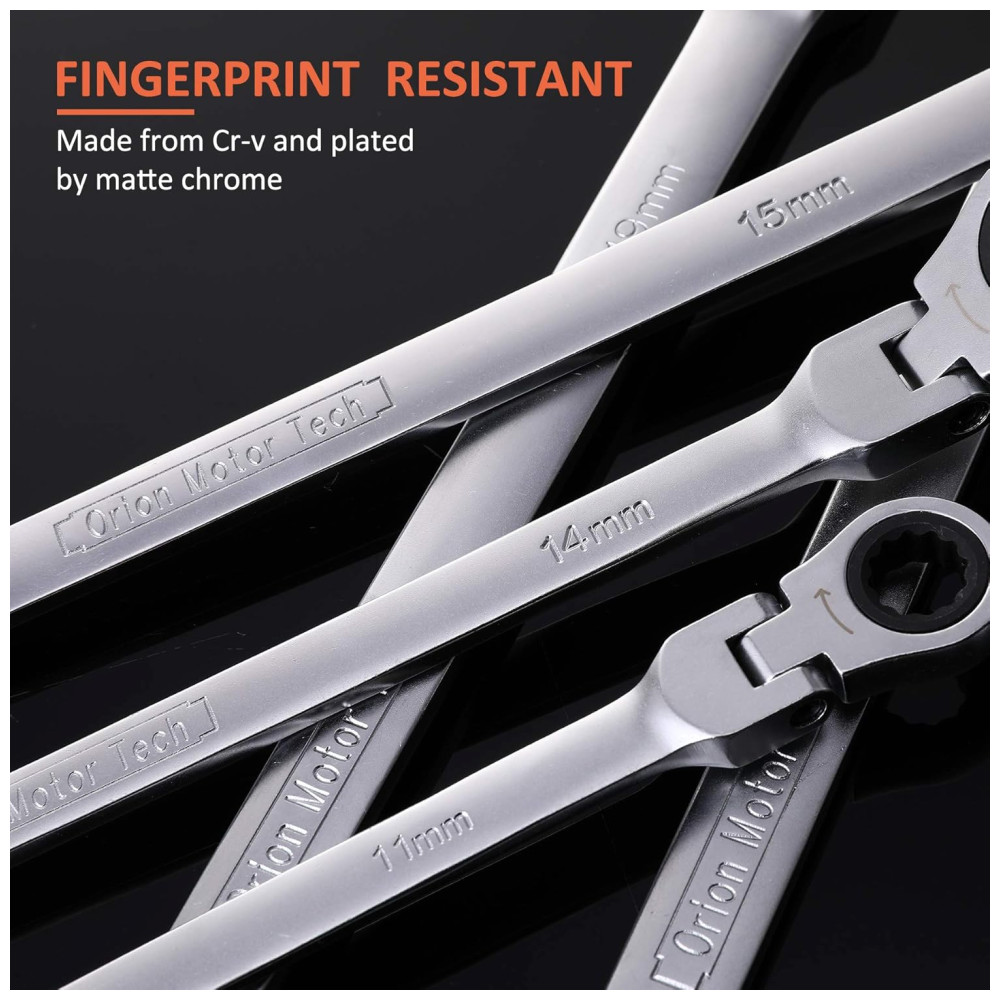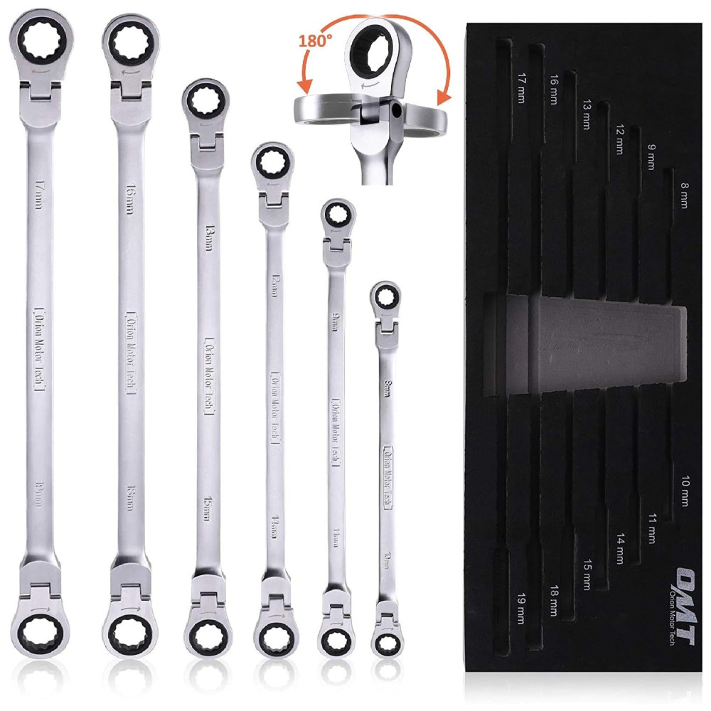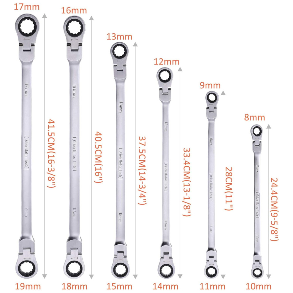 Ferramenta Automotiva Chave Catraca Extra Longa Cabeça Flexível 8 a 19mm 5pcs 10 Tamanhos ORION MOTOR TECH Prateado