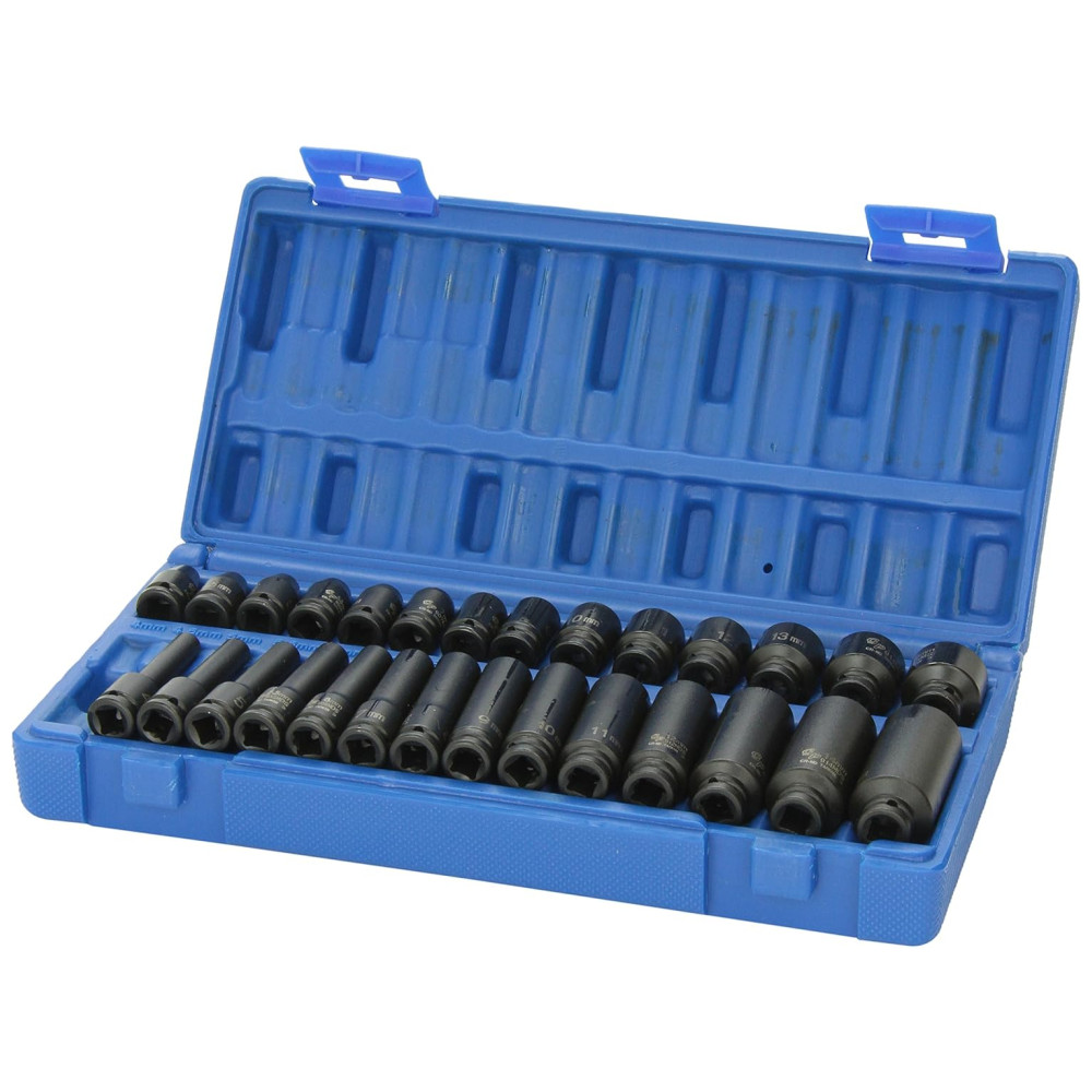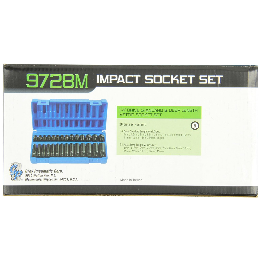 Ferramenta Automotiva Cinzento Pneumático 28 Peças de Comprimento Profundo de 1 4 GREY PNEUMATIC 9728M Azul