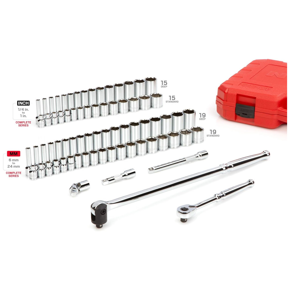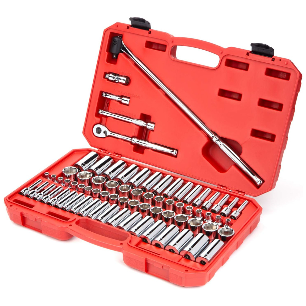 Ferramenta Automotiva Conjunto de Soquete e Catraca de 6 Pontos 74 Peças TEKTON SKT15311 Vermelho