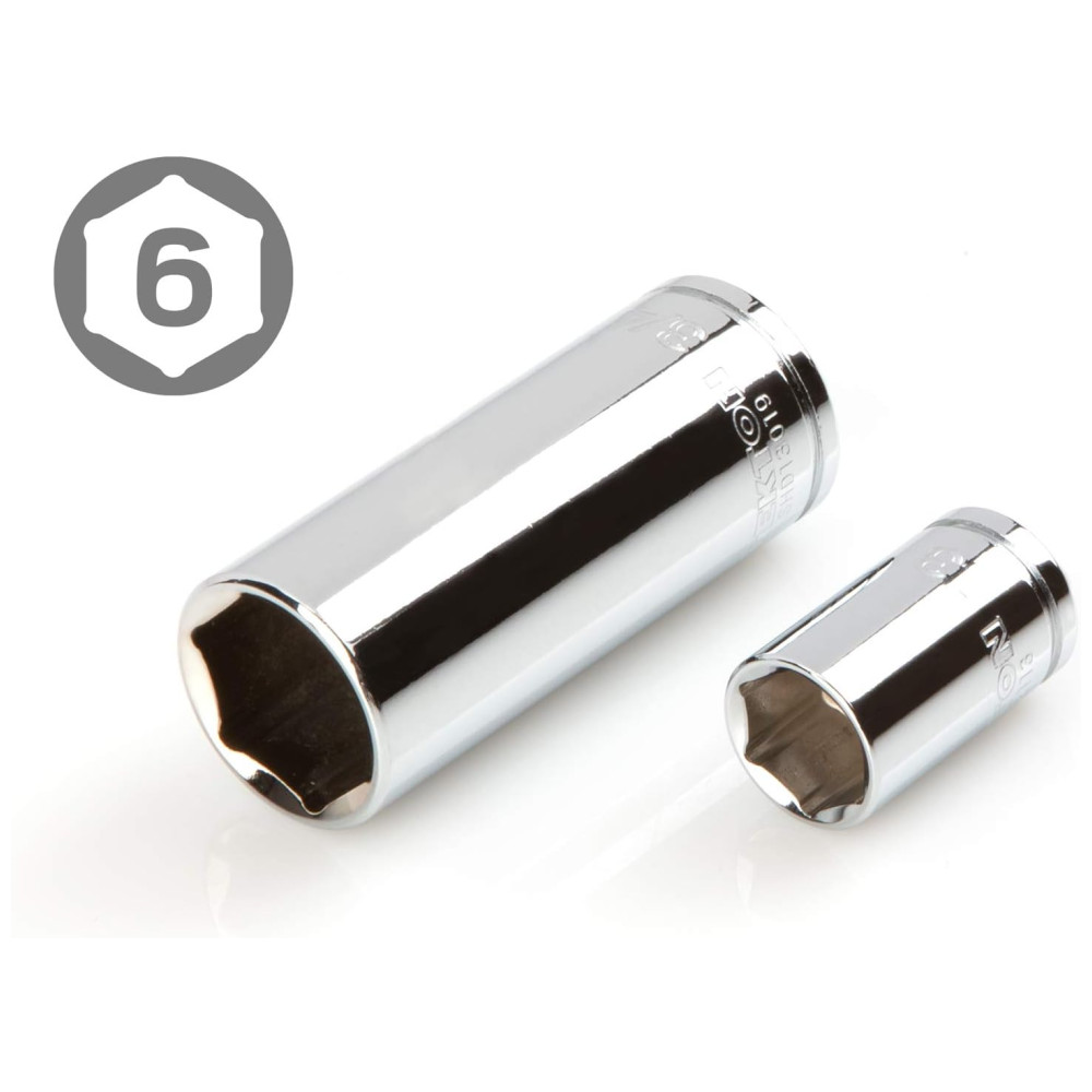 Inclui 15 soquetes de 6 pontos da unidade de 3, 8 pol. 1, 4, 9, 32, 5, 16, 11, 32, 3, 8, 7, 16, 1, 2, 9, 16, 5 , 8, 11, 16, 3, 4, 13, 16, 7, 8, 15, 16, 1 pol. 15 3, 8 pol. Soquetes profundos de 6 pontos de acionamento 1, 4, 9, 32, 5 , 16, 11, 32, 3, 8, 7, 16, 1, 2, 9, 16, 5, 8, 11, 16, 3, 4, 13, 16, 7, 8, 15, 16, 1 pol. 19 Soquetes de 6 pontos da unidade de 3, 8 pol. 6, 7, 8, 9, 10, 11, 12, 13, 14, 15, 16, 17, 18, 19, 20, 21, 22, 23, 19 Soquetes profundos de 6 pontos de 3, 8 pol. 6, 7, 8, 9, 10, 11, 12, 13, 14, 15, 16, 17, 18, 19, 20, 21, 22, Junta universal de 23, 1 unidade de 3, 8 pol. 2 extensões de unidade de 3, 8 pol. 3, 6 pol. 1 catraca de liberação rápida da unidade de 3, 8 pol. 1 Barra do disjuntor de 3, 8 pol. 18 pol. 1 estojo de zenamento a abertura do soquete de 6 pontos fornece um ajuste ideal e exato para as cabeças de fixação hexagonais. A geometria do soquete é projetada para aplicar força às laterais planas dos fixadores e não os cantos, impedindo o arredondamento. O soquete de comprimento padrão é relativamente versátil e adequado para uma ampla gama de aplicações. Marcas de tamanho extragrande estampadas são fáceis de ler e não pode se desgastar. O acabamento polido e cromado limpa facilmente e é altamente resistente à corrosão. As tomadas TEKTON de 6 pontos são ideais para trabalhar com parafusos de fixação hexagonal. Eles foram projetados para segurar as laterais e não os cantos das cabeças de fixação, o que impede o arredondamento. As grandes marcações estampadas são permanentemente impressas no material e otimizadas para facilitar a leitura