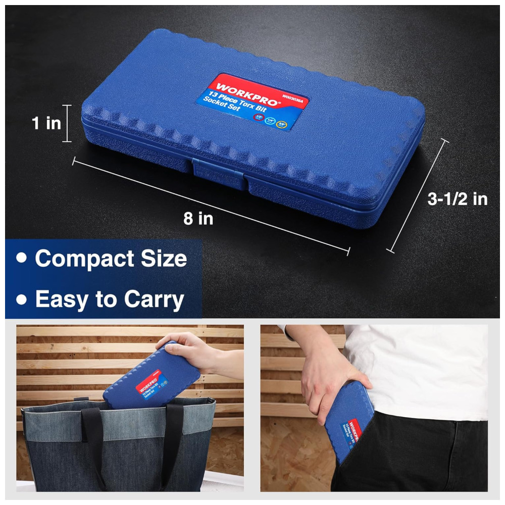 Ferramenta Automotiva Conjunto de Soquetes Bit Torx 13 Peças Aço S2 WORKPRO Preto