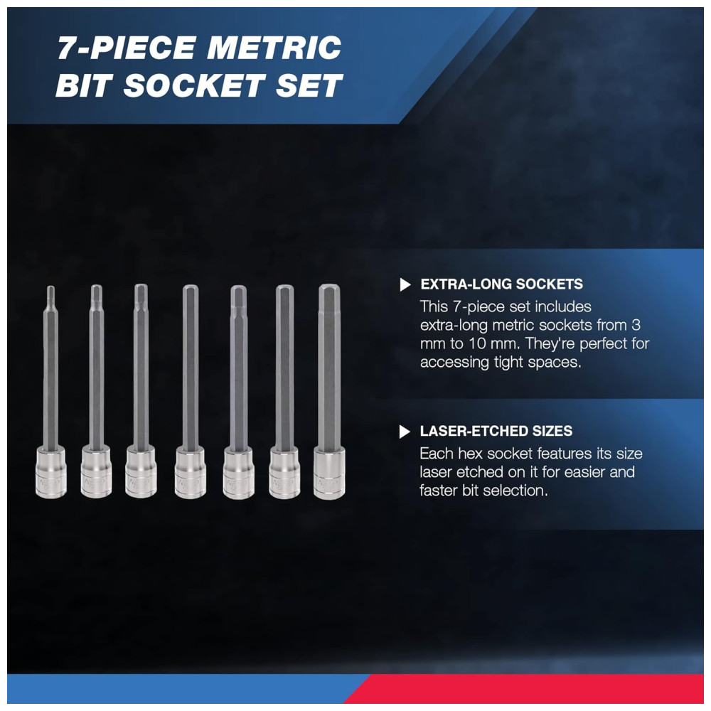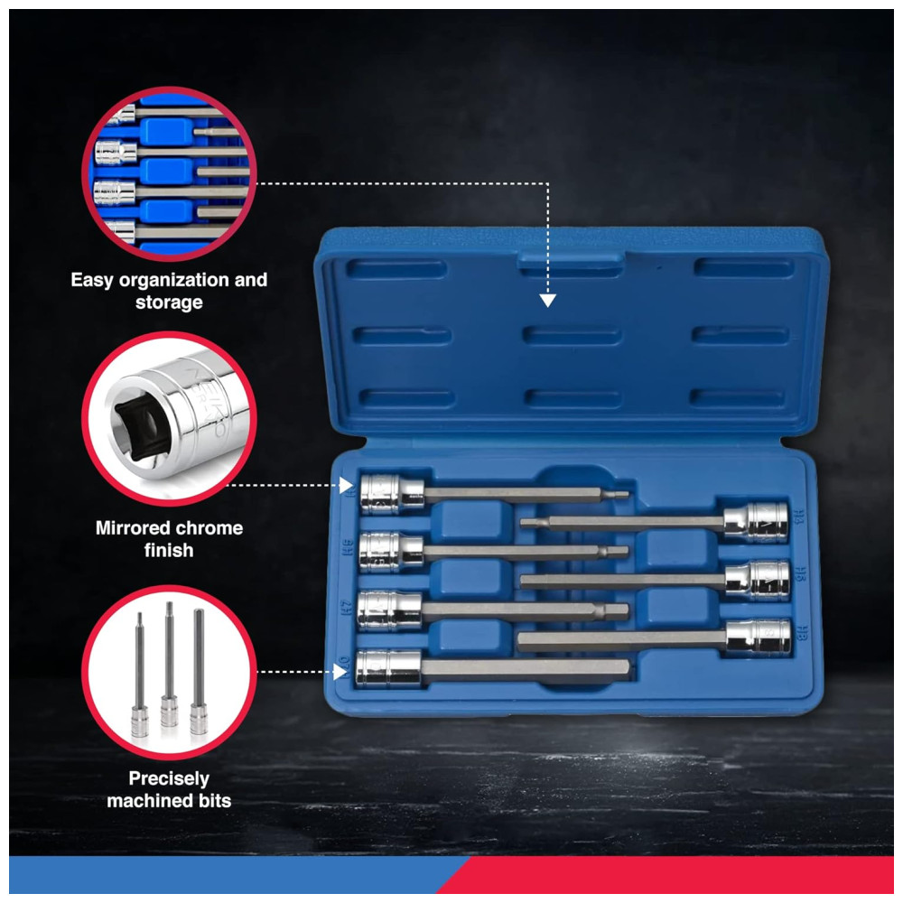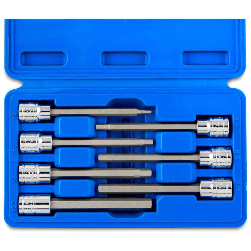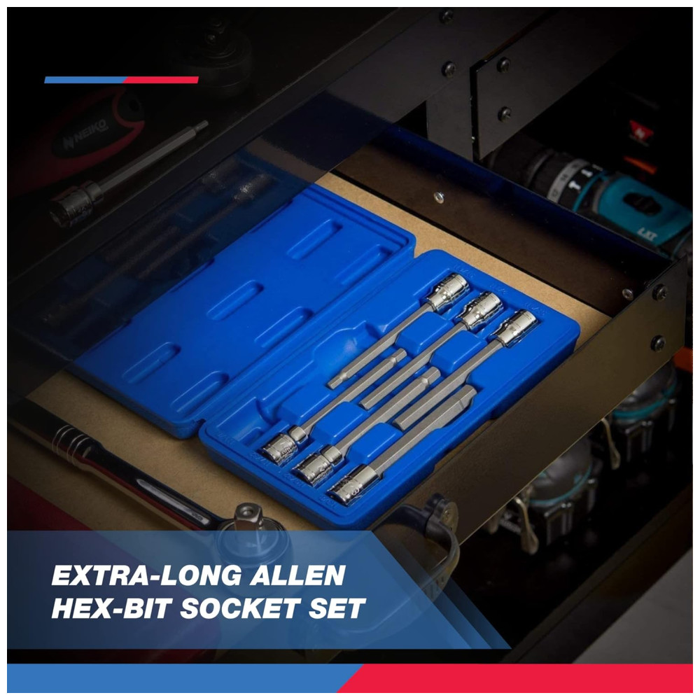 Ferramenta Automotiva Hexagonais Extra Longos de 3 8 3 a 10mm 7 Pç Aço S2 CrV NEIKO 10076A Azul