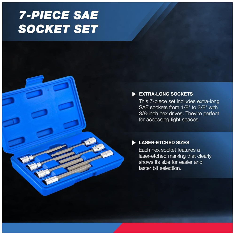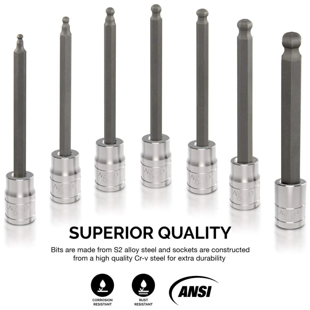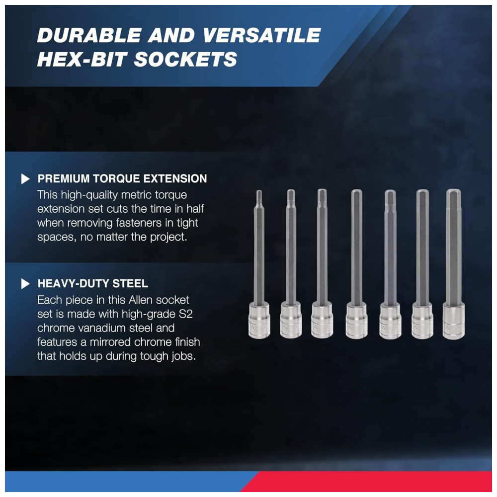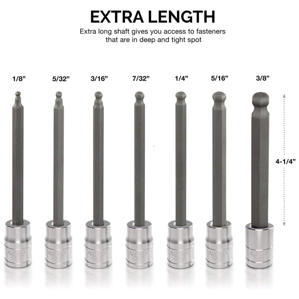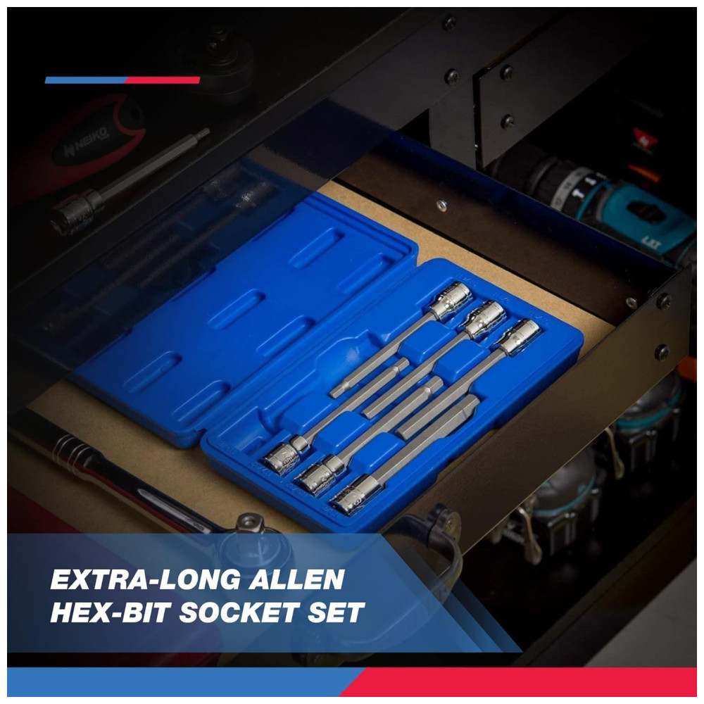 Ferramenta Automotiva Soquetes Sextavados Allen Extralongo Aço CR V 7 Peças NEIKO 10072A Azul