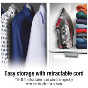 Proporcione às suas roupas o deslize suave e o poder de vaporização dos profissionais com o Ferro CHI de Cabo Retrátil. Projetado para desempenho de passadoria profissional, ele é desenvolvido com a icônica tecnologia cerâmica e de titânio da CHI. O Ferro CHI oferece o desempenho excepcional que você só pode esperar da CHI. A placa de cerâmica com titânio infundido proporciona durabilidade e deslize excepcional, enquanto mais de 400 furos de vapor oferecem vapor potente para passar as roupas sem esforço. Após passar, o cabo retrátil de 2,4 metros se recolhe rapidamente na base com um simples toque de botão para facilitar o armazenamento. O seletor de controle de temperatura permite uma seleção rápida de tecidos, e o ferro aquece rapidamente, reduzindo os tempos de espera. Para tranquilidade, o ferro de passar roupas está equipado com desligamento automático em 3 vias, desligando automaticamente em 30 segundos se cair sobre a base ou o lado e em 15 minutos se deixado sobre o calcanhar. Feito com materiais premium, este ferro oferece desempenho duradouro. A tecnologia deste ferro é a mesma tecnologia de placa de cerâmica com titânio infundido que alimenta as ferramentas de estilização de cabelo da CHI, incluindo o famoso CHI G2 Flat Iron.