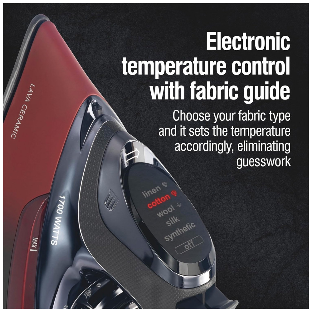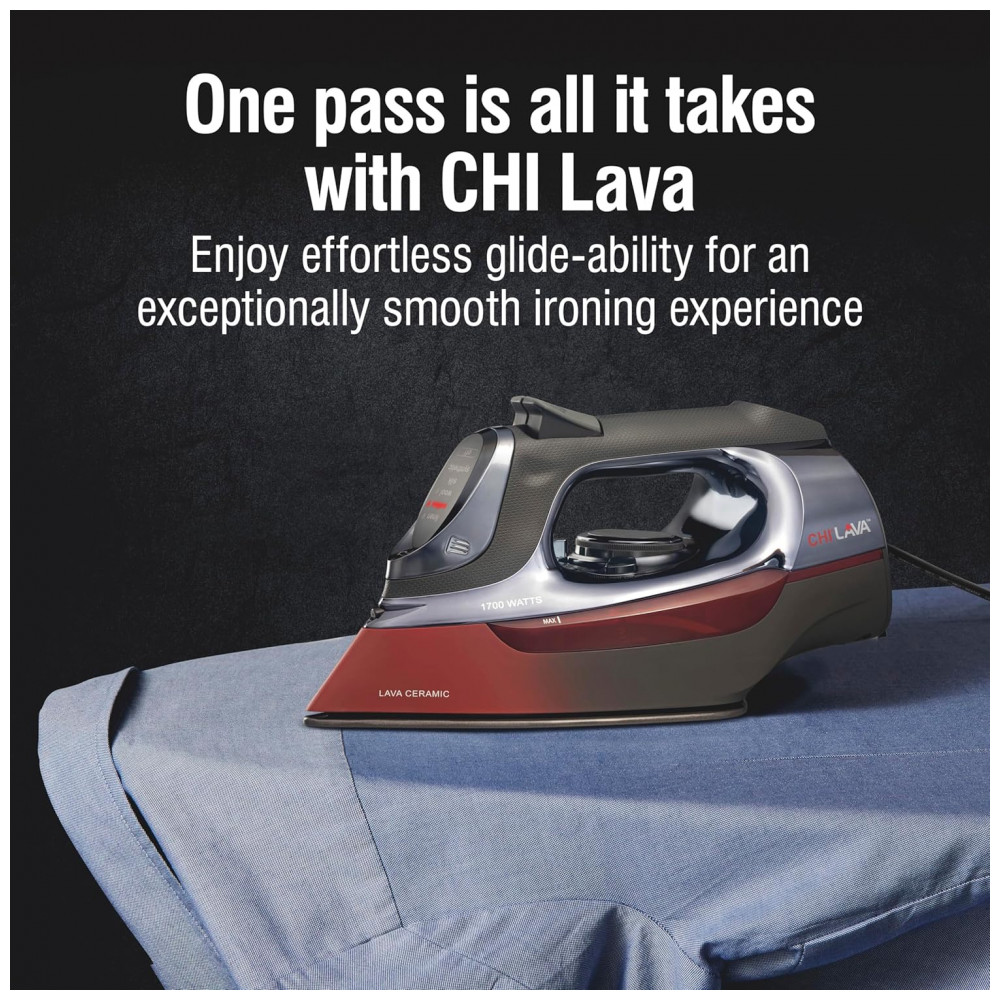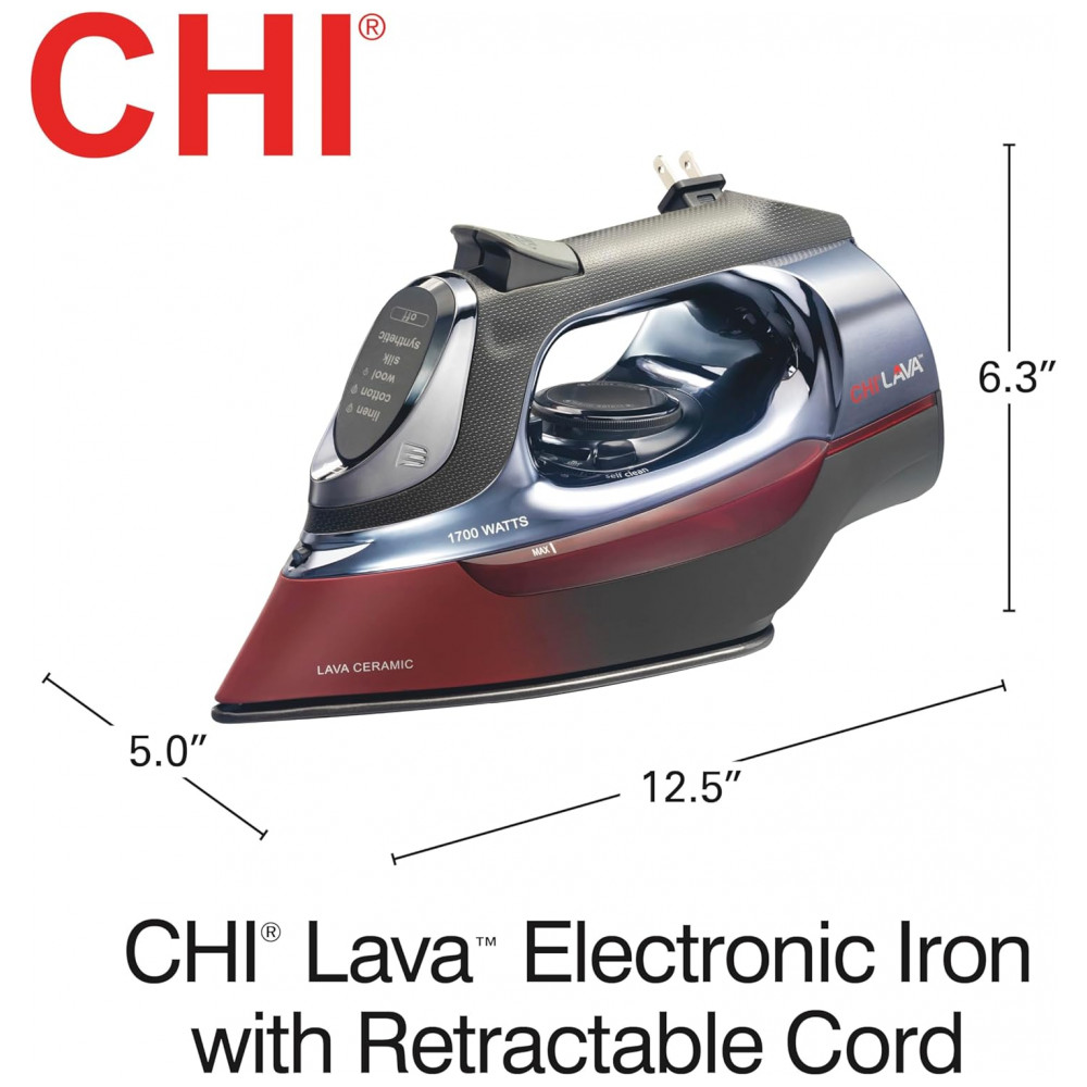 O Ferro Eletrônico CHI Lava com Cordão Retrátil combina com a potência da cerâmica CHI para uma durabilidade e condutividade térmica sem precedentes. Essa inovação tecnológica garante um deslize extra suave, tornando a tarefa de passar roupas muito mais fácil. Projetado para um desempenho de nível profissional, o Ferro CHI Lava possui mais de 400 furos de vapor para resultados poderosos e livres de rugas em todos os tecidos. O controle eletrônico de temperatura com guia de tecido simplifica a tarefa de passar roupas, eliminando a necessidade de adivinhação. Uma vez terminado, o cordão retrátil de 2,4 metros se guarda facilmente com um único toque, e a função de desligamento automático de 3 vias do ferro proporciona tranquilidade, desligando automaticamente para segurança. Feito com a Tecnologia CHI Lava, o ferro a vapor CHI para roupas apresenta a inovadora base de cerâmica infundida com lava, criada com lava vulcânica e cerâmica CHI, oferecendo extrema durabilidade e deslize suave. Com mais de 400 furos de vapor, esse ferro pesado oferece vapor potente para remover rugas com facilidade. O controle de temperatura eletrônico com guia de tecido permite escolher o tipo de tecido usando o controle iluminado, e o ferro ajusta a temperatura automaticamente, eliminando a adivinhação. Com um cordão de 2,4 metros que se retrai com o toque de um botão, o armazenamento é simples. Esse ferro a vapor CHI Lava aquece rapidamente e é adequado para todos os tipos de tecido, desde os mais grossos algodões até as sedas e sintéticos mais finos.