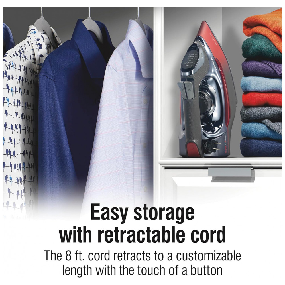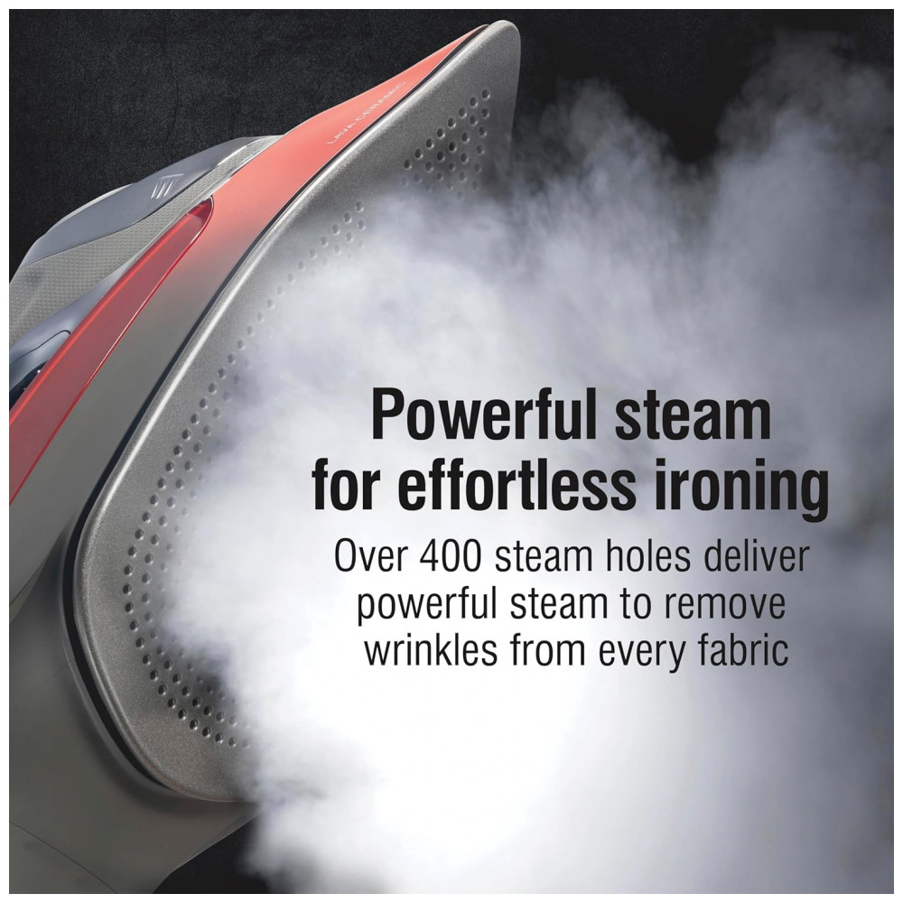 Ferro a Vapor CHI com Cordão Retrátil 1700 Watts Desligamento Automático 3 Vias 400 Furos Cerâmica Infundida com Lava Preto e Vermelho