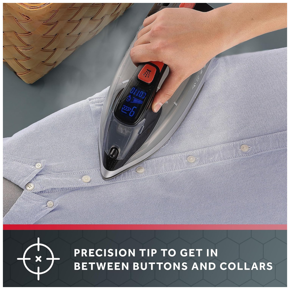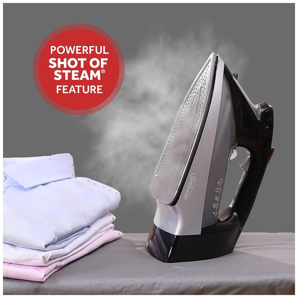 O ferro a vapor digital Sunbeam Professional 1700W é um produto premium, com recursos avançados e qualidade excepcional. Possui uma tela LCD multicolorida de fácil leitura para controlar 11 configurações predefinidas de tecido. Além disso, o poderoso recurso SHOT OF STEAM fornece uma explosão extra de vapor para ajudar a suavizar rugas teimosas em superfícies planas e verticalmente para pendurar roupas, estofados ou cortinas.