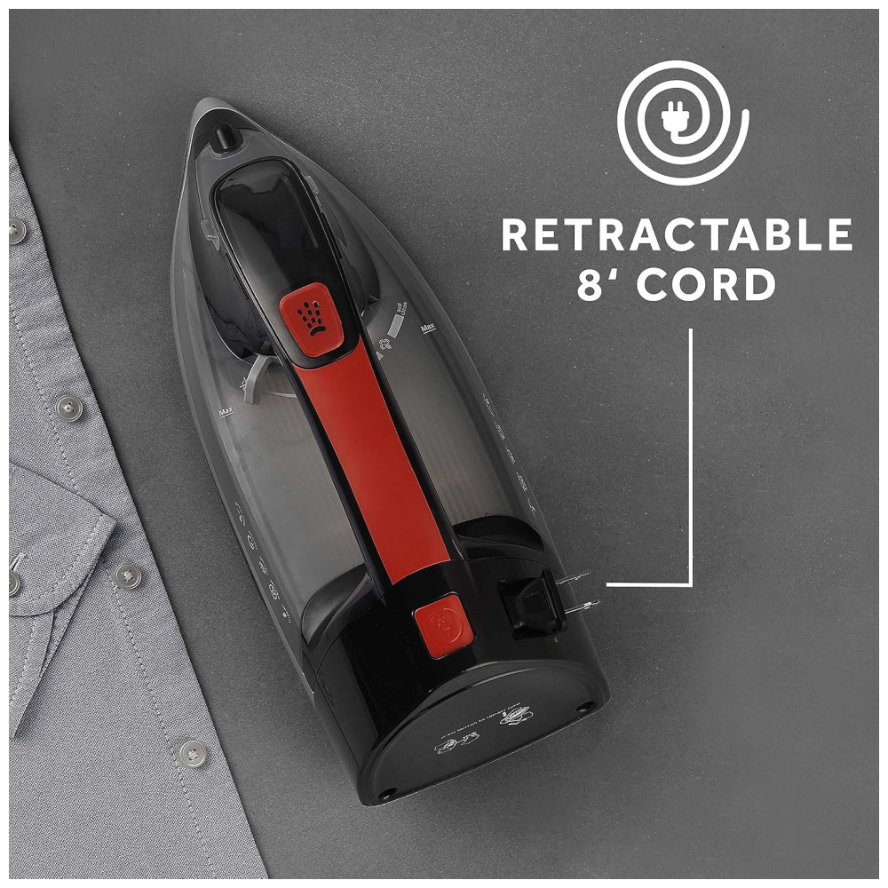 Para maior comodidade, este ferro portátil inclui um cabo retrátil de 2,43 metros para fácil armazenamento e possui um grande tanque de água de 350 ml para longas sessões de engomar. A ponta de precisão permite passar entre botões, lapelas e ao redor de golas com fácil manobrabilidade. A base antiaderente desliza facilmente sobre os tecidos para suavizar as rugas de forma rápida e eficiente, proporcionando sempre resultados profissionais.