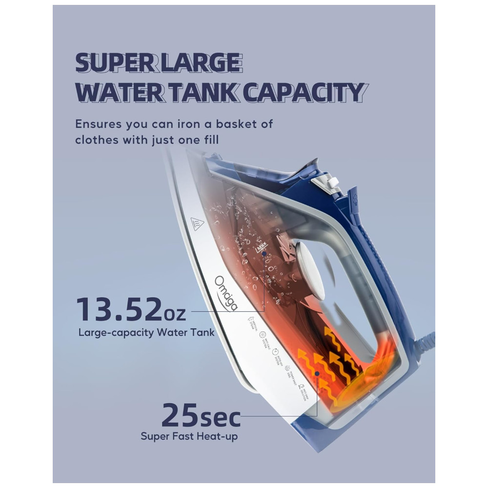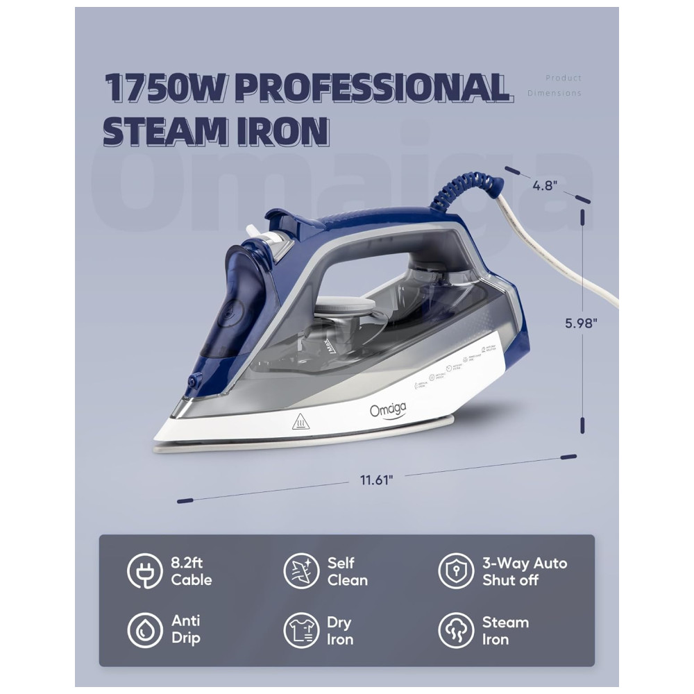 Ferro a vapor para roupas com base cerâmica e tanque de água de 048L 1750W da OMAIGA.