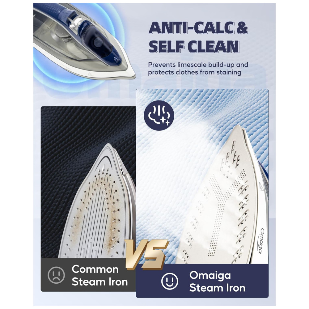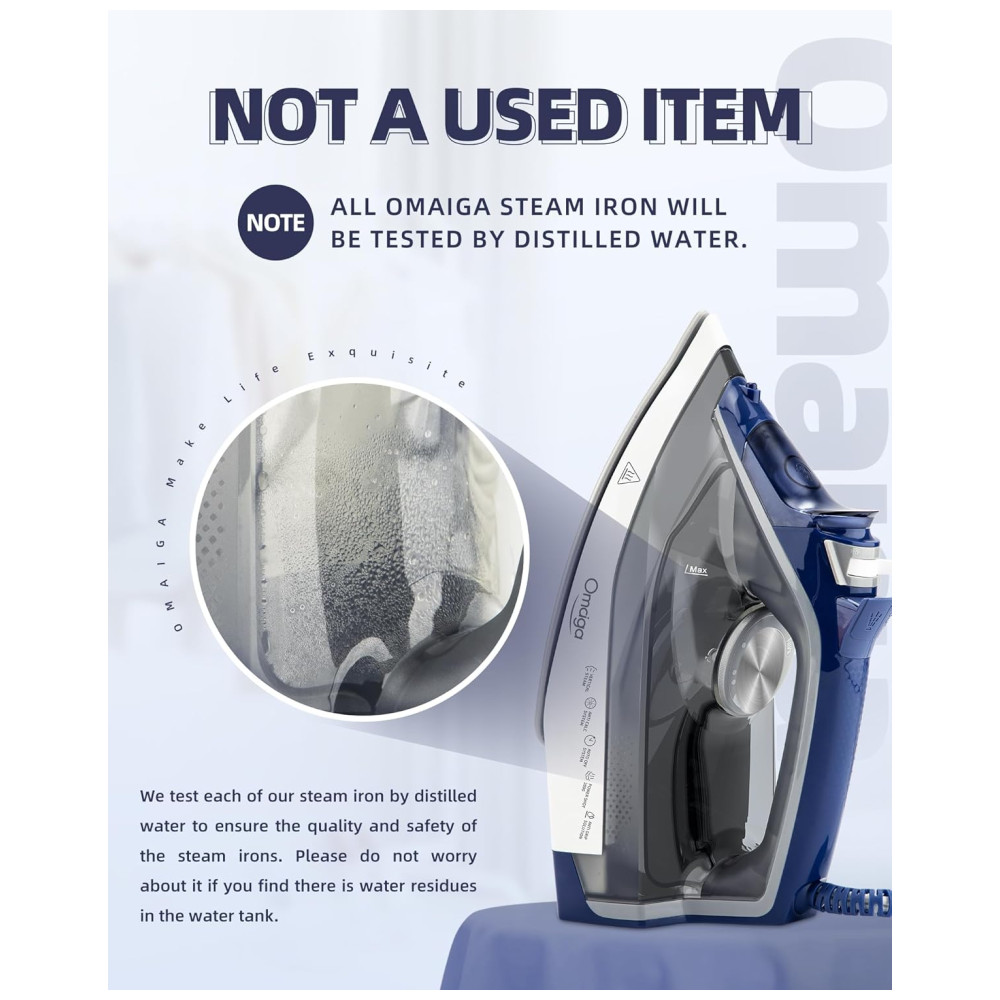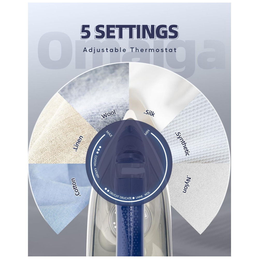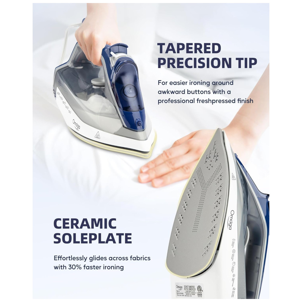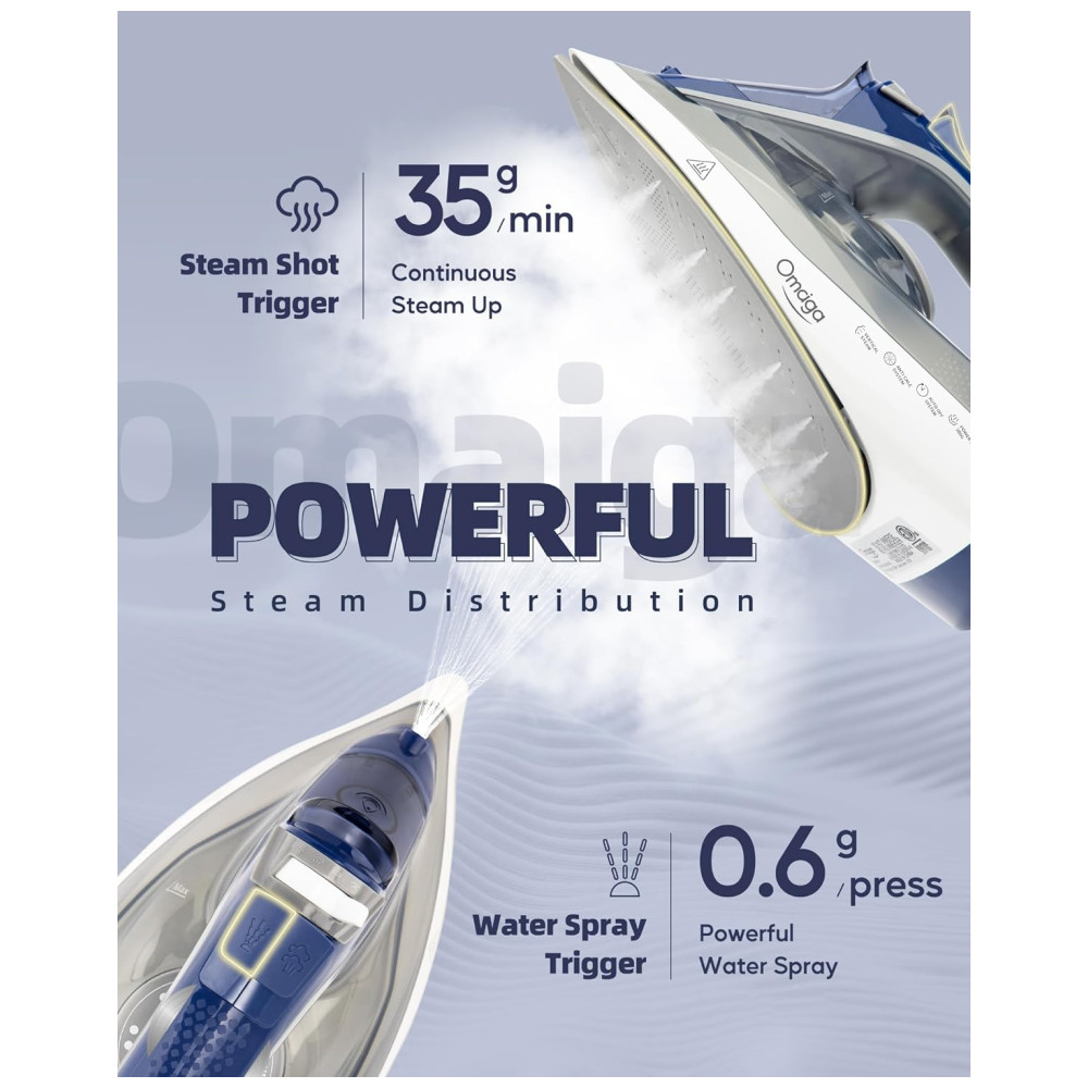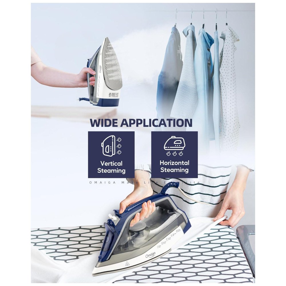 Este ferro de passar roupa OMAIGA é equipado com uma base revestida de cerâmica durável, proporcionando um deslizamento suave e preciso sobre todos os tipos de tecidos. Com sua ponta cônica, é fácil navegar em cantos difíceis de alcançar. Este ferro a vapor possui um sistema de aquecimento potente de 1750 W, fornecendo 25 g min de vapor contínuo para suavizar eficazmente os vincos teimosos em todos os tipos de tecido. Com um tanque de água de grande capacidade de 0,48 gramas e 400ml, é possível passar um cesto cheio de roupas com uma única carga. O ferro OMAIGA oferece configurações versáteis com opções de vapor paralelo e vertical, engomar a seco e engomar a vapor, além de ter orifícios de vapor cientificamente projetados que distribuem o vapor uniformemente para uma remoção eficaz de rugas. Possui também três configurações de temperatura ajustáveis para atender a vários tipos de tecido. Este ferro de passar roupa OMAIGA tem um mecanismo de desligamento automático de 3 vias para maior segurança, desligando em 30 segundos se for deixado na horizontal ou tombado e em 8 minutos se for deixado na vertical. Além disso, o desligamento automático inteligente evita pingos de água da base quando a temperatura está muito baixa para a geração de vapor.