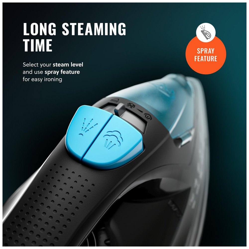 Diga adeus às rugas teimosas em segundos! Com 1250W de vapor potente, este ferro aquece rapidamente e suaviza as rugas sem esforço, proporcionando roupas sempre impecáveis e profissionais. Com uma base antiaderente que desliza suavemente por todos os tecidos, evitando enganchos e queimaduras, este ferro facilita o processo de passar roupa. Controle de temperatura ajustável e jato de vapor personalizado para maior precisão, seja para tecidos delicados ou rugas profundas. Com desligamento automático para segurança e sistema antivazamento e autolimpeza. O amplo reservatório de água de 190ml permite passar por mais tempo sem parar, garantindo anos de uso confiável e eficiente.