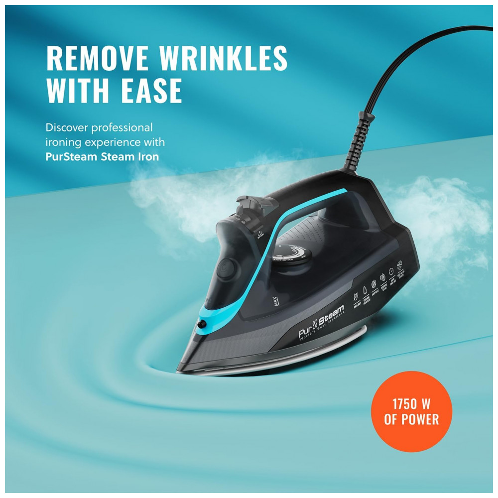 Ferro a Vapor Pursteam SteamBurst 1750W Base de Cerâmica Vapor Ajustável Jato de Vapor Autolimpeza Anticalcário Pursteam World’s Best Steamers