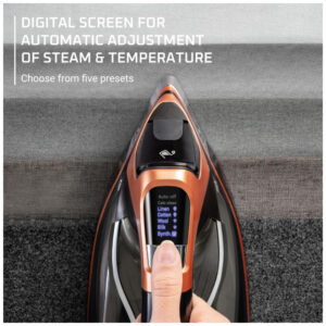 Este ferro de passar roupa a vapor possui 1850 watts de potência que proporciona penetração de vapor com tecnologia de bomba. Com uma base de aço inoxidável, este ferro a vapor profissional da Rowenta desliza sobre as roupas, removendo rugas. Com sua tela inteligente única, os usuários desfrutam do ajuste eletrônico de temperatura e vapor. O gatilho de impulso de vapor deste produto Rowenta permite controle personalizado sobre a aplicação de vapor, proporcionando uma experiência de passar a ferro sob medida para vários tipos de tecido. Este combo de ferro a vapor tem regulação eletrônica de vapor e configurações precisas para diminuir a probabilidade de vazamentos durante a operação. Usado com uma tábua de passar roupa durante a rotina diária em casa, este ferro a vapor é uma escolha adequada para aqueles que valorizam a precisão em seu processo de passar a ferro. ALCANCE DE VAPOR – Alcance a penetração desejada com a tecnologia de impulso de vapor e 1850 watts deste ferro de roupas e ferro a vapor para roupas MANUSEIO PRECISO DE VAPOR – Este ferro a vapor para roupas apresenta uma ponta de precisão que permite navegar com facilidade ao redor de botões, colarinhos e costuras TECNOLOGIA DE TELA INTELIGENTE – Este ferro a vapor para roupas possui uma tela display que permite escolher entre cinco configurações de vapor para passar diversos tipos de tecidos PASSAR HORIZONTAL – O design exclusivamente ponderado deste ferro de roupas e ferro a vapor é projetado para um passar horizontal superior sem função de vapor vertical EVITE VAZAMENTOS – Estes ferros a vapor para passar roupas possuem, como um ferro de roupas e ferro a vapor para roupas, regulação eletrônica de vapor e configurações precisas para ajudar a evitar vazamentos