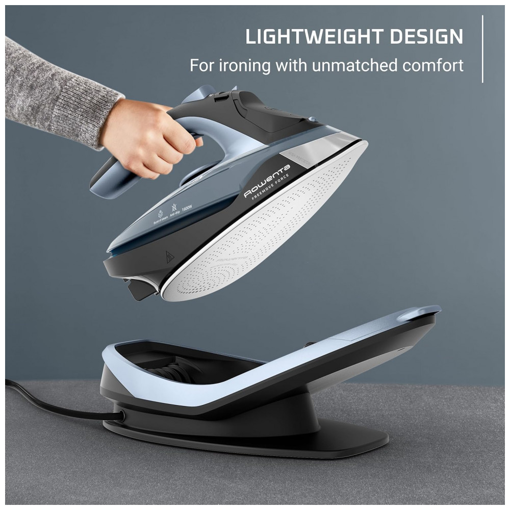 O Ferro a Vapor sem Fio Rowenta Freemove torna o cuidado com as roupas uma tarefa sem esforço. Com 1600W de potência, vapor contínuo de até 18 g/min e um impulso de 110 g/min para lidar com rugas difíceis. Leve e ergonômico, com base horizontal para passar sem fio de forma suave. Desligamento automático para total tranquilidade. PASSAR ROUPA COM EFICIÊNCIA 1600 W para aquecimento rápido em 30 segundos, com função de vapor extra para combater até as rugas mais difíceis. CONVENIÊNCIA SEM FIO Um ferro leve e sem fio para total liberdade de movimento, com recarga rápida na base para passar as roupas facilmente. GUIA DE LUZ INDICATIVA Luz inteligente na base sinaliza quando o ferro está aquecendo – ajuste primeiro o seletor de temperatura, pois o vapor estará disponível somente após o ajuste do seletor. DIFUSÃO DE VAPOR OTIMIZADA Base de aço inoxidável resistente a arranhões com 400 furos ativos para uma difusão de vapor perfeita e deslize suave. ARMAZENAMENTO SEGURO E FÁCIL Sistema de travamento e enrolamento do cabo na base para transporte seguro e armazenamento conveniente.