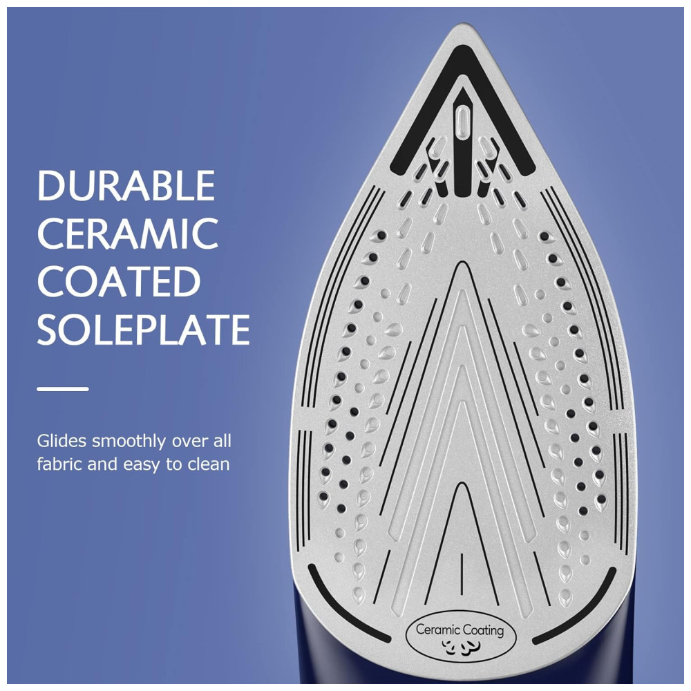 Base com revestimento cerâmico antiaderente e desliza suavemente sobre todo o tecido mais duro do que o aço inoxidável, super resistente a arranhões e mais durável e fácil de limpar