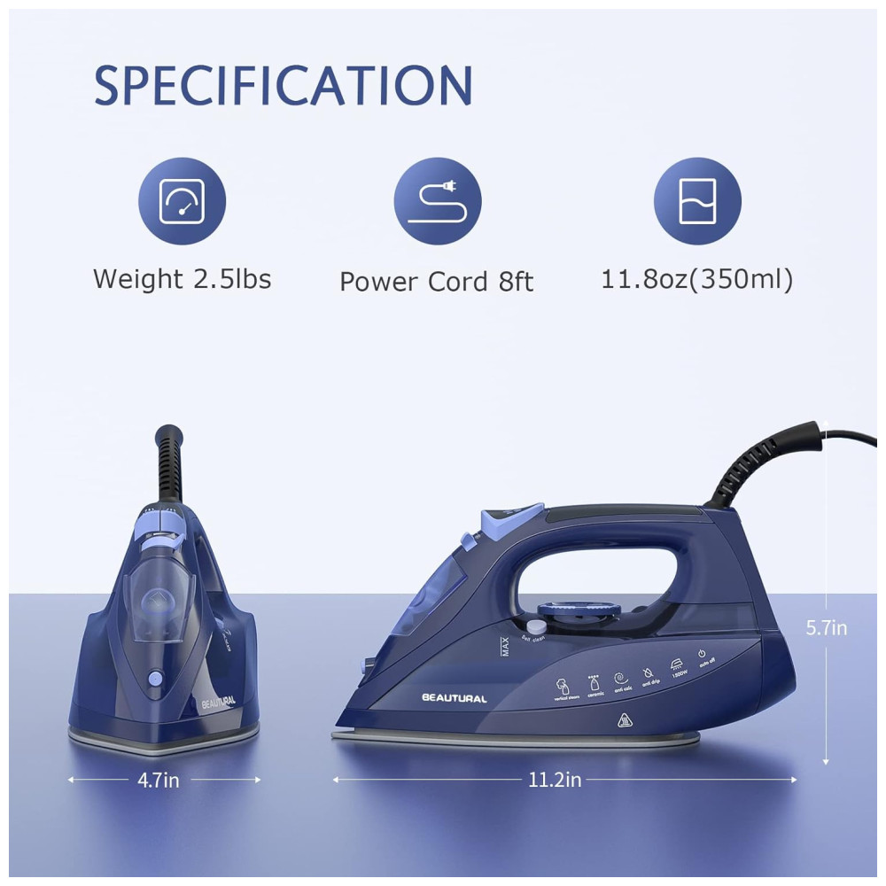 Ferro de Passar a Vapor 1 com Desligamento Automático 1500W 110W BEAUTURAL 1 MR08US03 Azul